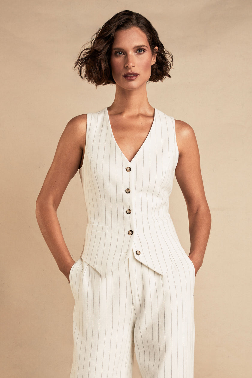 Hampton Waistcoat (Oyster Linen Pinstripe)