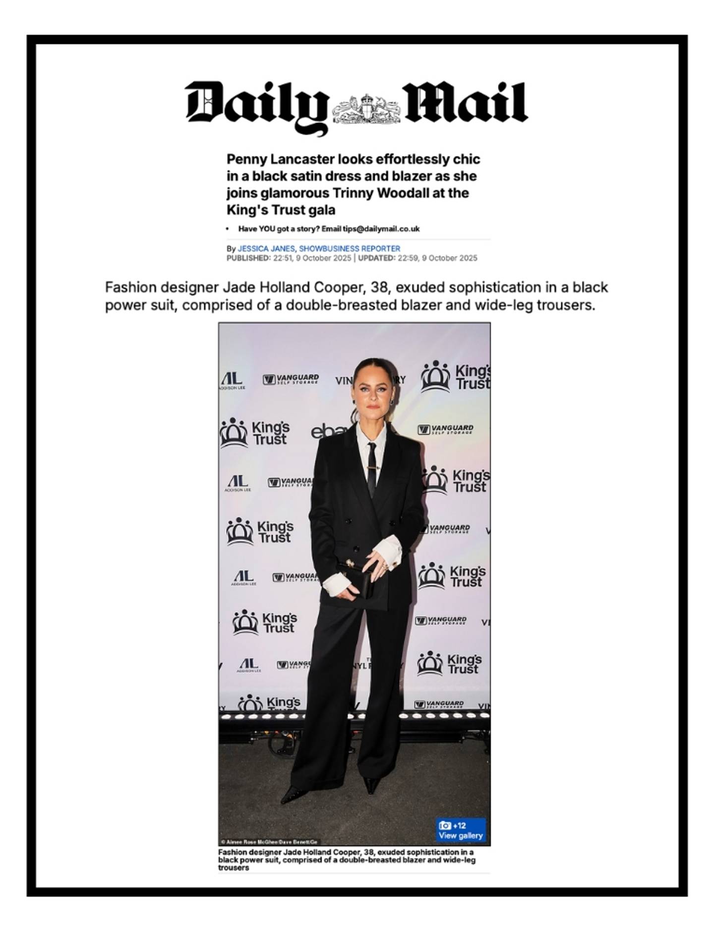 We were thrilled to see our Founder and Managing Director, Jade Holland Cooper, pictured at The King's Trust gala!