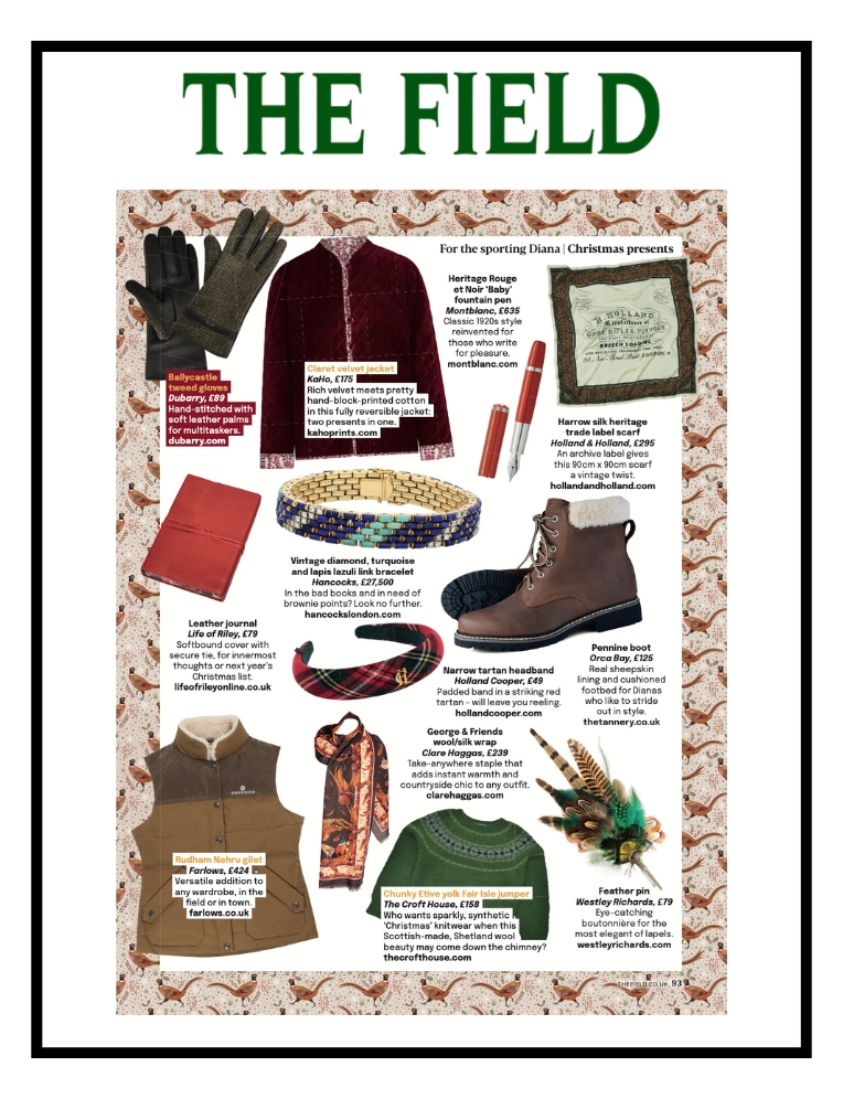 We were thrilled to see our Narrow Headband, featured in The Field's 'Christmas Presents'.