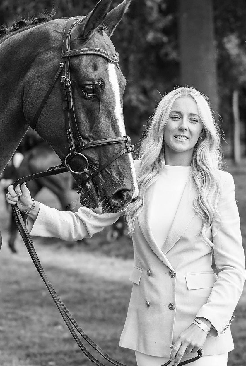 Georgia, a leading, young, British event rider, very well known for campaigning her first horse, who she has had since 2017 all the way up to the prestigious 5* level. In 2024, Georgia and her horse Nono completed Badminton and won the prize for the best U25 rider proving Georgia’s determination and hard work. Notable results include, 16th place at Blenheim CCI4*L in 2023, 3rd in the CCI4*L at Millstreet in 2022. Georgia showcases our brand both on and off the horse, wearing our technical equestrian range and trots up in our effortlessly elegant, tailored pieces.