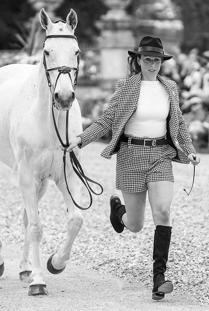 Yasmin Ingham is a 5* British Event rider and World Champion. She represented Team GB at the European Championships taking the gold medal, as well as winning individual gold at the World Eventing Championships in 2022. Yasmin was selected to be the Alternative Combination at the 2024 Paris Olympic Games, and has her sights set on the next Olympic Games. Yasmin chooses to wear timelessly tailored Holland Cooper pieces during trot-ups.