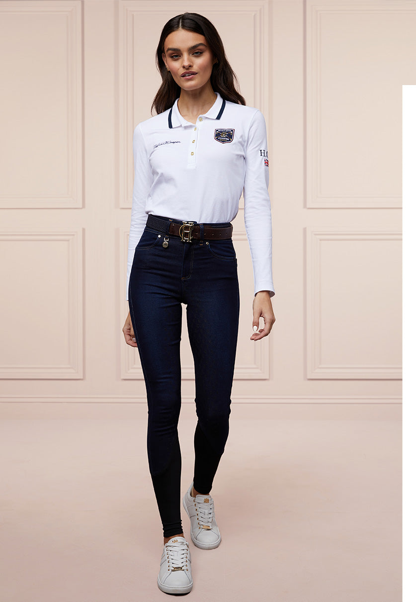 Fiona is an international event rider who produces and rides horses up to 5* level. Fiona has competed at many high-profile competitions and in 2018 she was chosen to represent Great Britain in the Nations Cup Team. In 2023, Fiona had two rides at the prestigious Badminton Horse Trials proving her talent as horses much qualify to be able to compete at this event! Fiona loves wearing Holland Cooper during competitions and trot ups. One of her favourite pieces being our Premium High Rise Competition Breeches in White.
