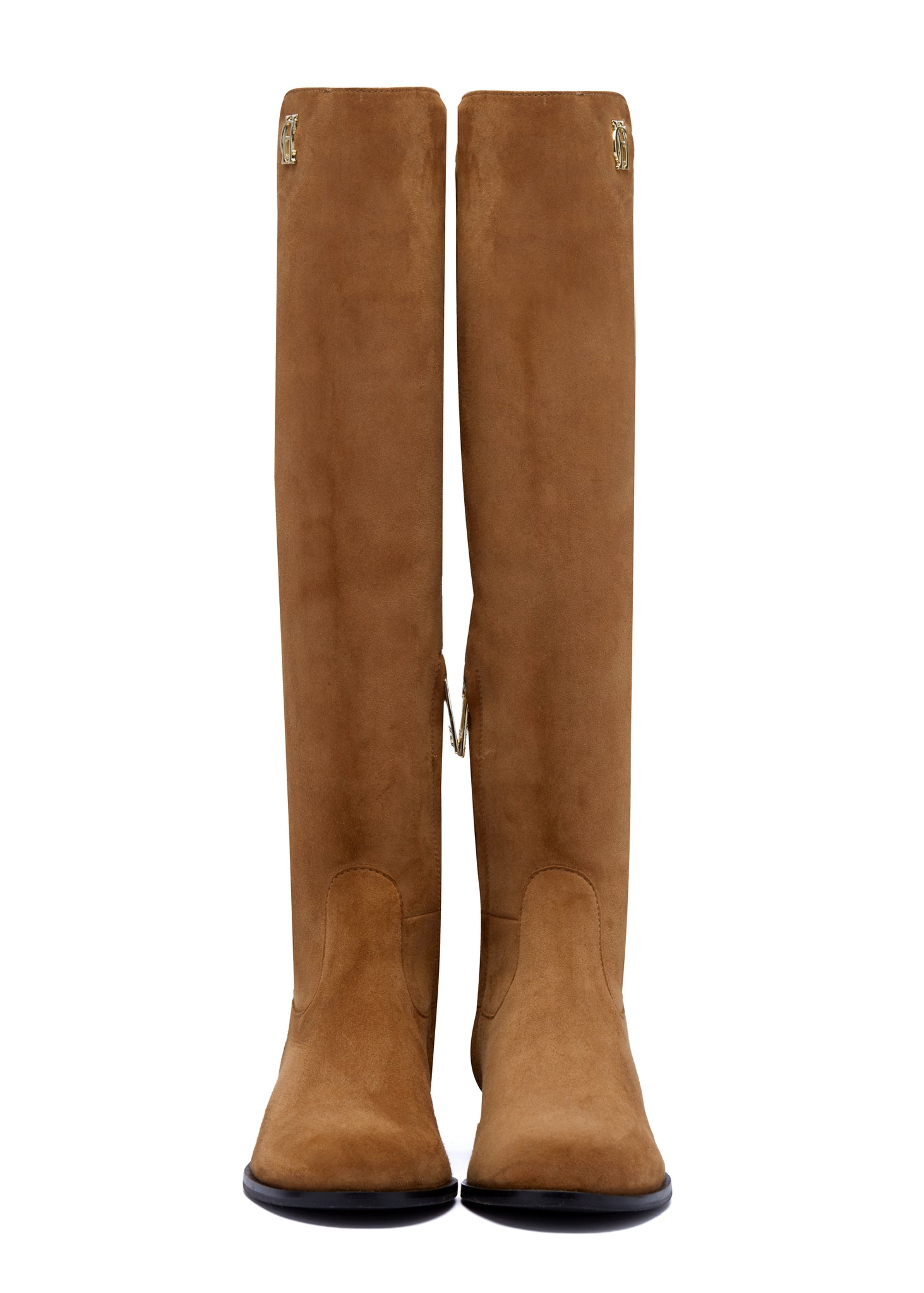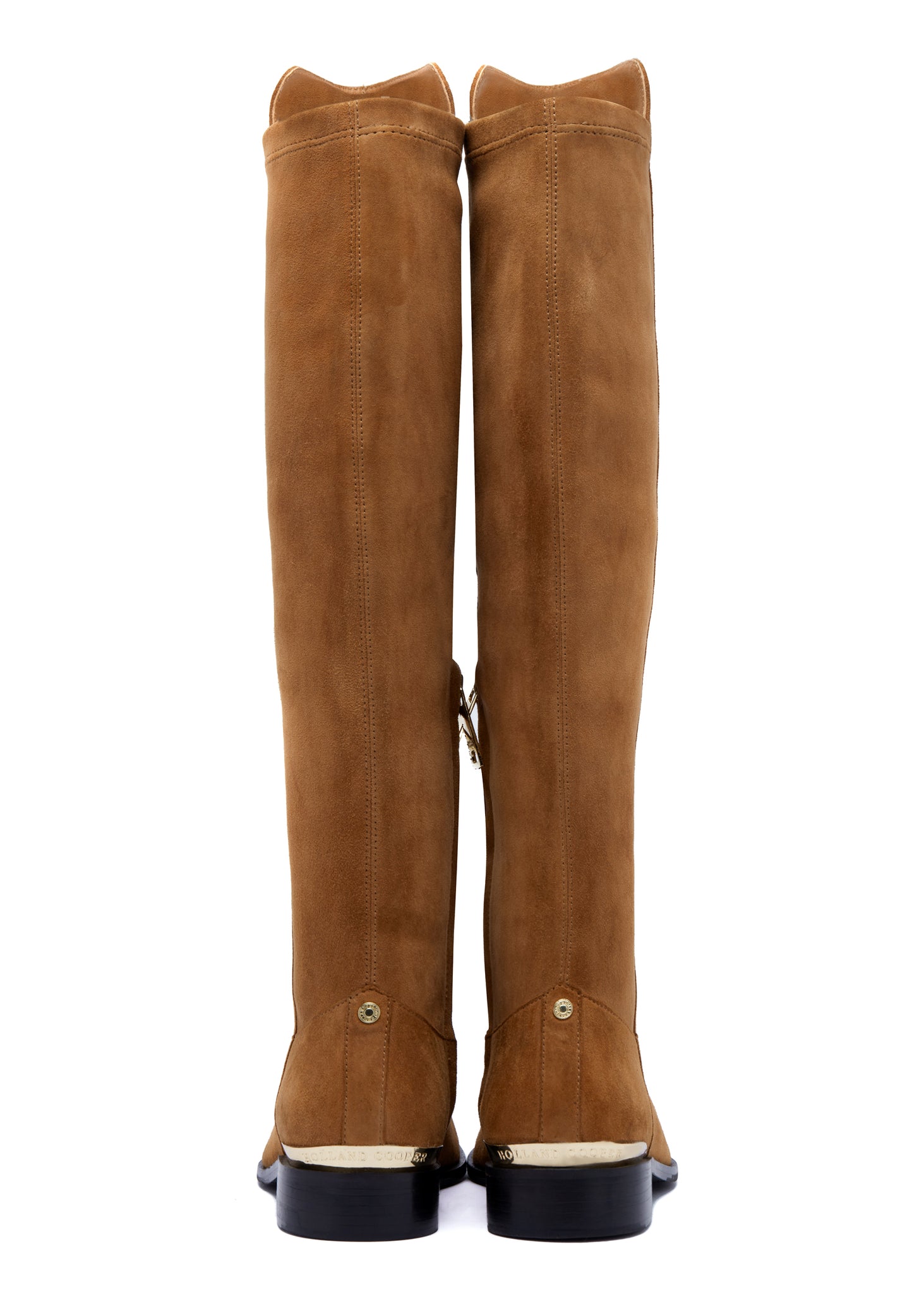 Created from premium suede, these slim boots contour to the leg for a streamlined style and fit. With a stretch back for comfort and a small block heel, these handmade boots are both comfortable and versatile. Designed with an internal zip for easy foot entry and detailed with gold branding to the side panel.