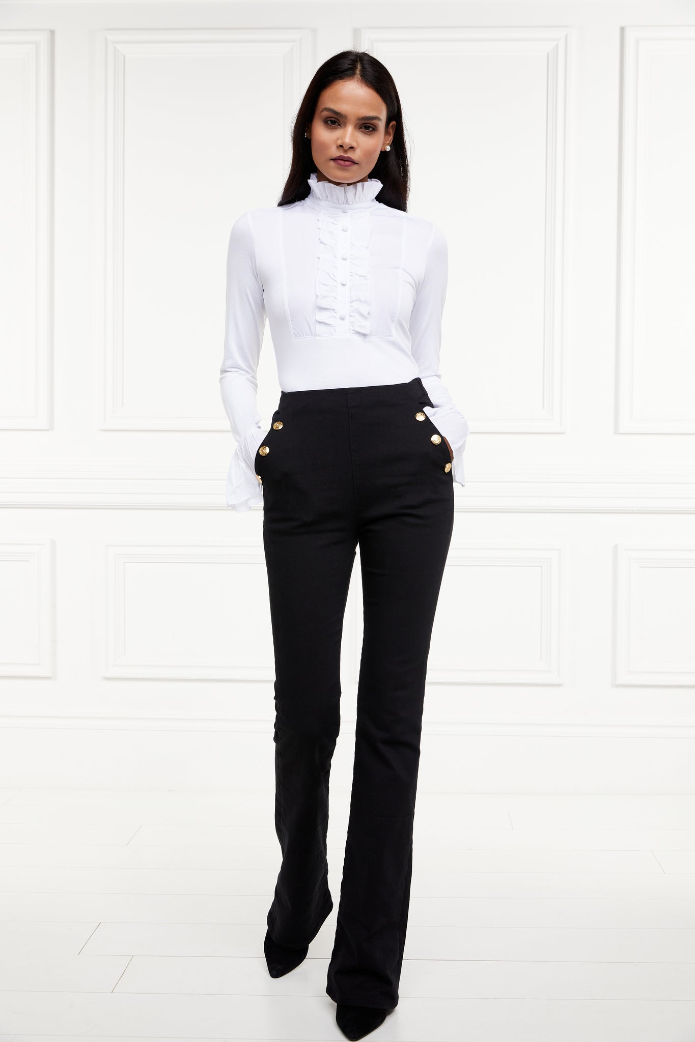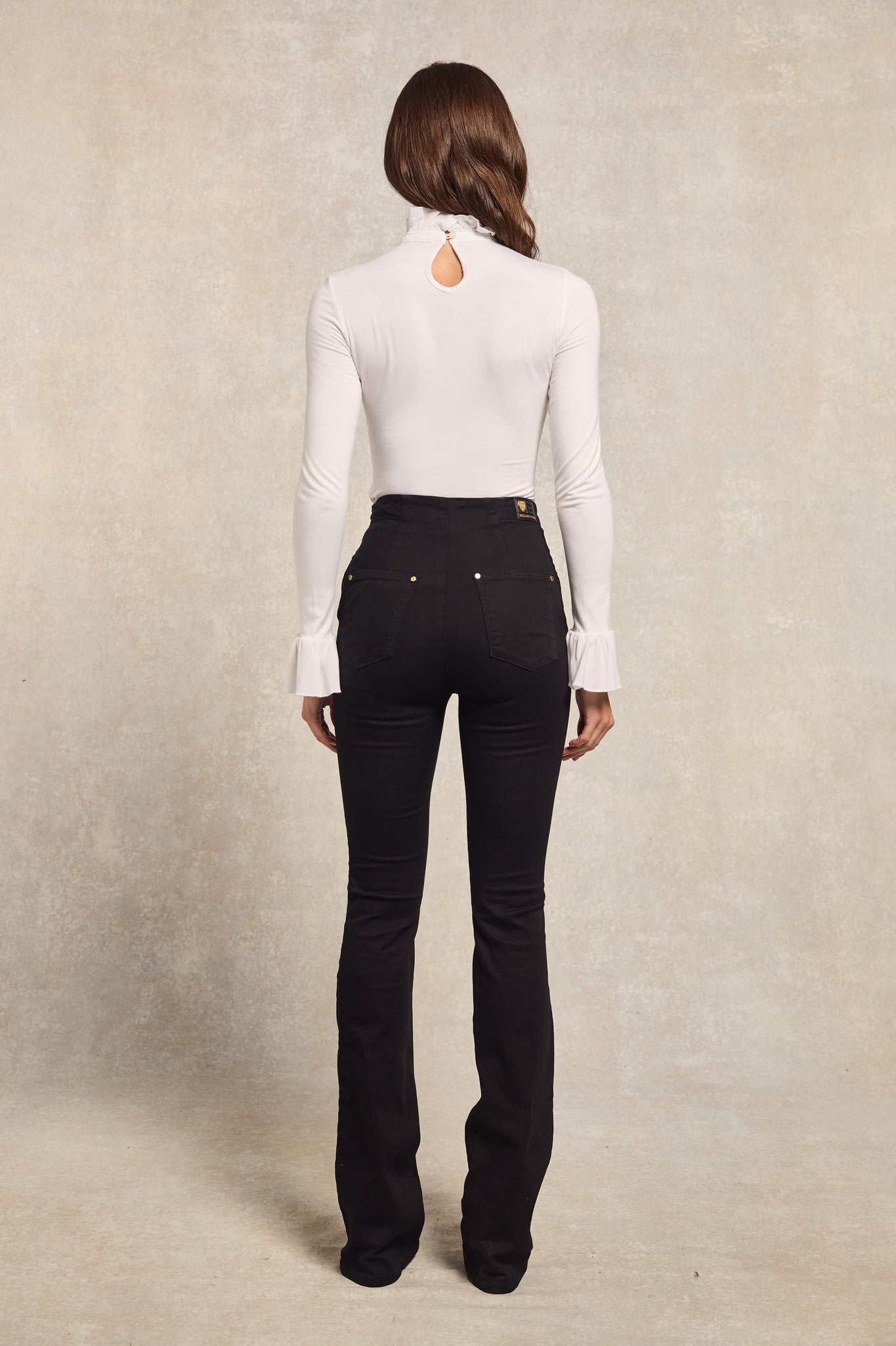 Made with super soft stretch denim featuring a high-rise waist and side zip entry, these luxurious jeans flick out into an elegant flare that adds an extra something to every-day looks. The stand out feature is the sailor front accompanied with 6 signature HC crested rivets to the front pockets. Available in Petite, Regular, Tall and Extra Long.