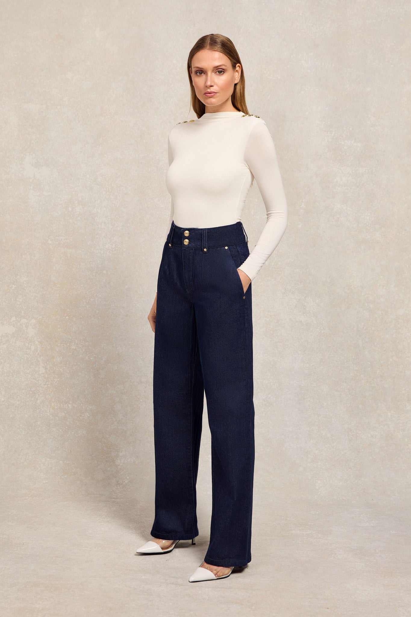 Crafted from a super soft, lightweight yarn for unparalleled comfort. This elegant knit features ribbed detailing on the crew neck, cuffs, and hem, ensuring a refined fit. Signature HC branding adorns the cuffs and one shoulder, adding a touch of sophistication. Designed with shoulder pads for a structured silhouette, the Amy Crew Neck Knit effortlessly combines style and comfort, making it a versatile addition to your wardrobe.