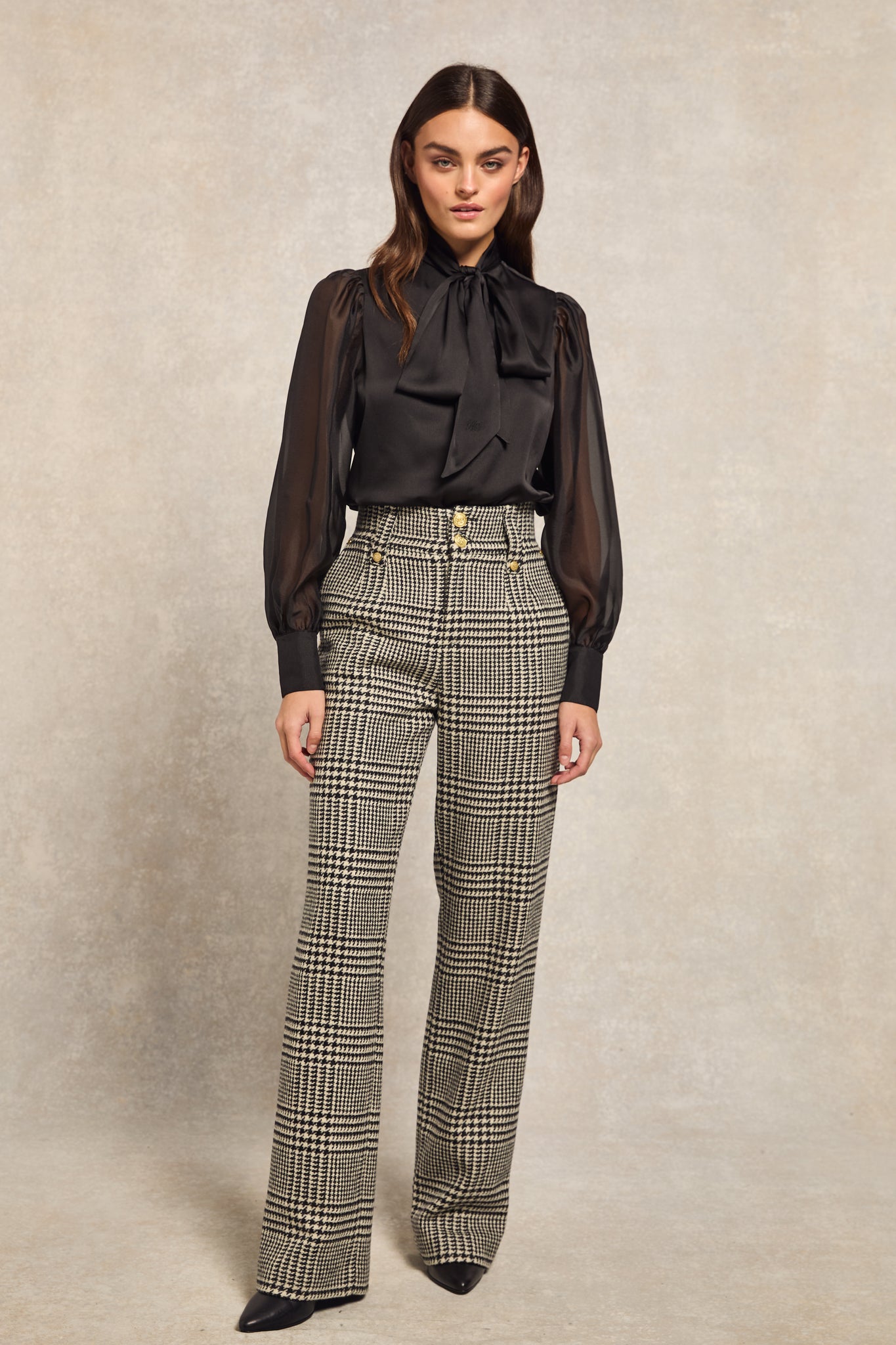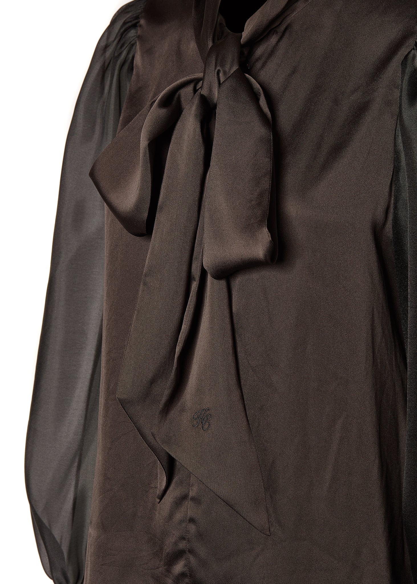 Designed with a fluid drape with a statement oversized bow collar, this blouse has been beautifully created from an elegant satin fabric. Curated to be fitted on the shoulders with a looser fit through the body, the extended cuffs enhance the feminine silhouette of this piece. Detailed with our iconic gold hardware & HC branding to the back yolk.