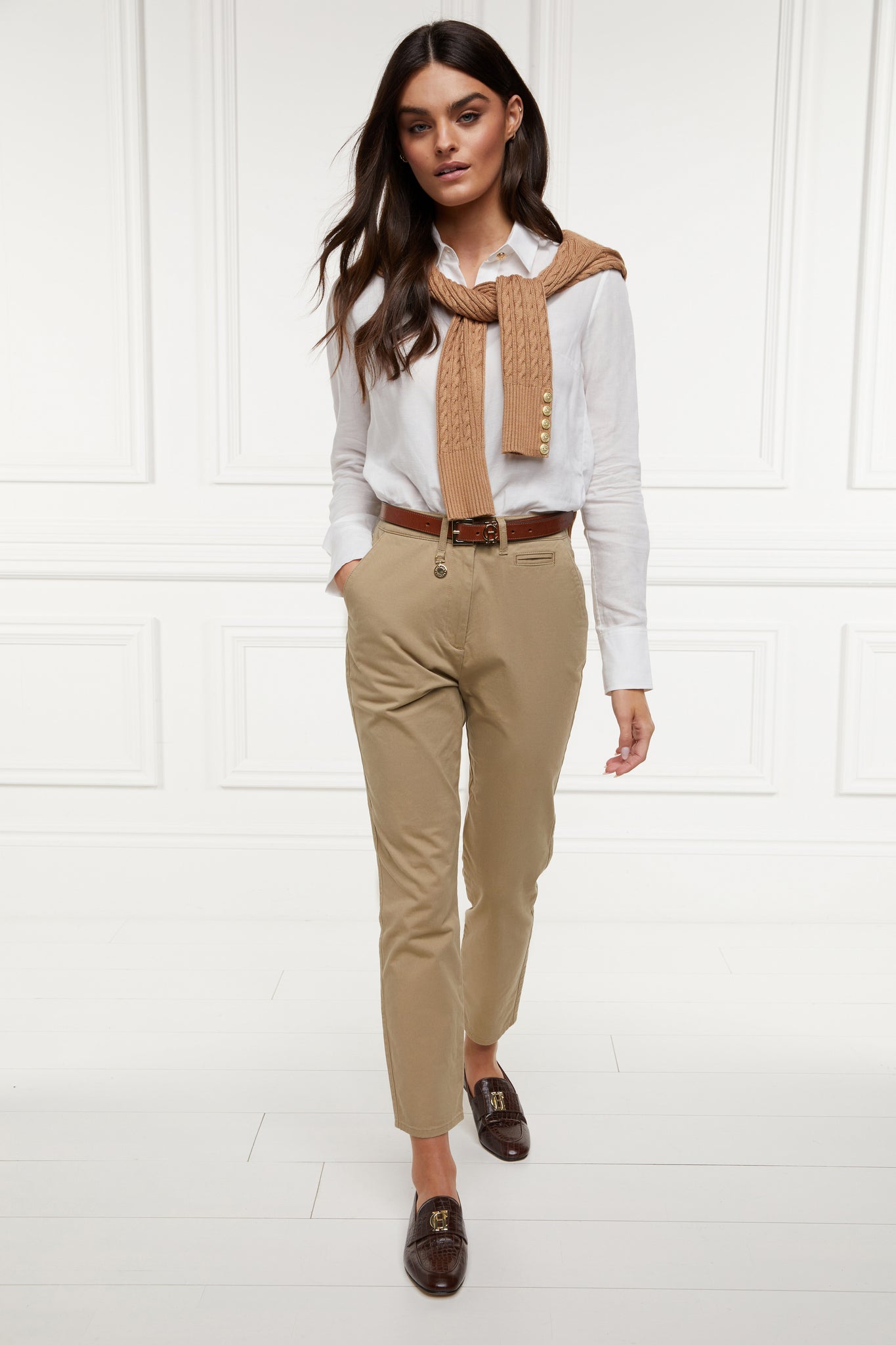 The HC take on the classic chino style, these timeless trousers are the perfect every day trouser where comfort and style come hand in hand. Made from a luxurious cotton blend perfectly cropped above the ankle and detailed with our iconic gold HC hardware. -
