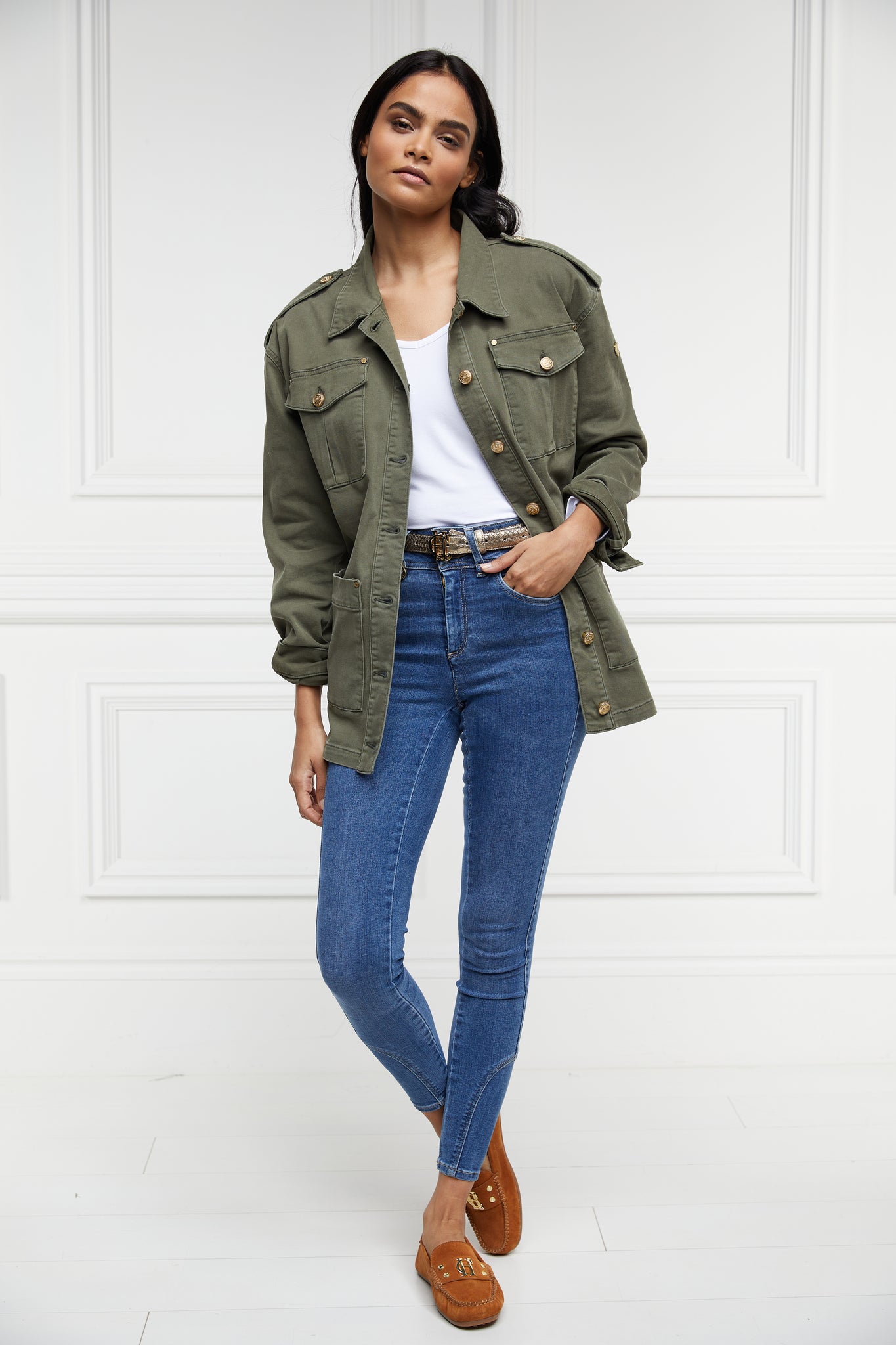 Designed with an oversized and relaxed fit, this jacket wears perfectly open or closed. With traditional military-inspired details with four box pleated pockets, this piece has been created with adjustable long sleeves. Finished with our signature HC branding.