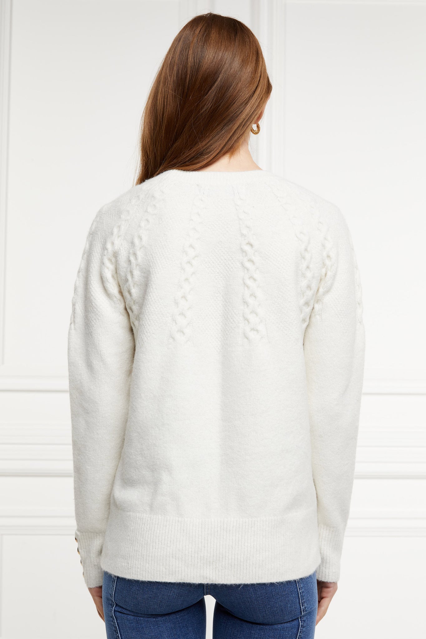 Created with a delicate cable knit to the upper body, this knit has been designed with a slouchy and relaxed fit. With raglan sleeves, ribbed cuffs & hem, the premium alpaca yarns make for a super soft and cosy touch. Detailed with our branded hardware.