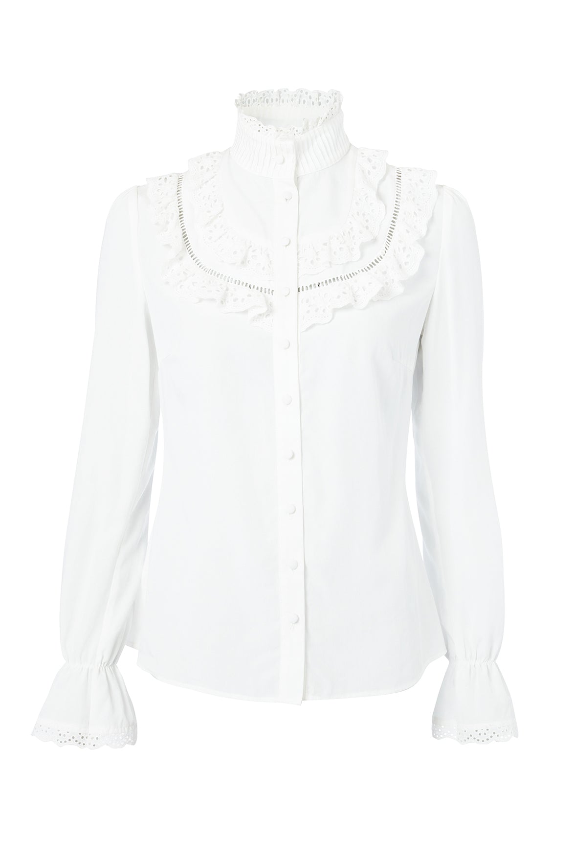 Designed with a slim fit with delicate lace trim to both the collar and cuff edges, this shirt is beautifully elegant and timeless. With flattering lace details to the front body for a true bohemian & vintage feel, the feminine style makes this piece perfect for both day and night styling.