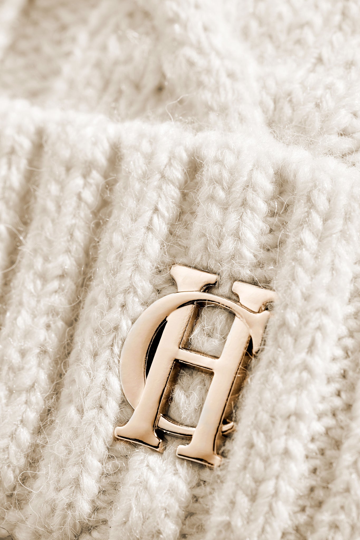 The Baby Cable Hat is a beautifully crafted children's accessory, designed with style and comfort in mind. The product is a soft, knitted hat designed with a premium cable pattern for a cozy feel. It features a stretch ribbed hem accented with a small gold HC rivet, adding a touch of elegance. The hat is topped with a faux fur bobble in premium colours, combining style and warmth. Made from an acrylic blend, it offers exceptional softness and comfort for your little one.