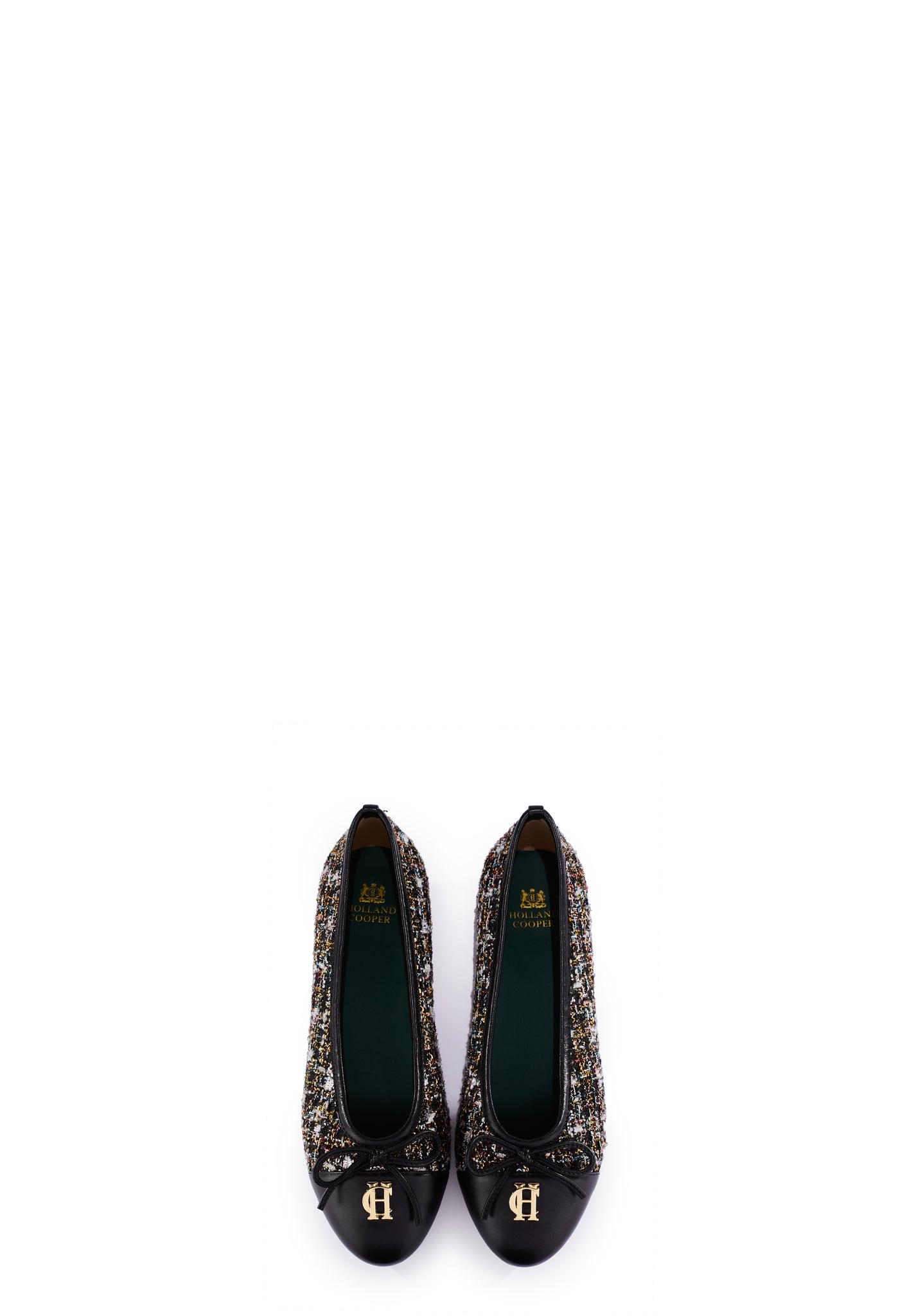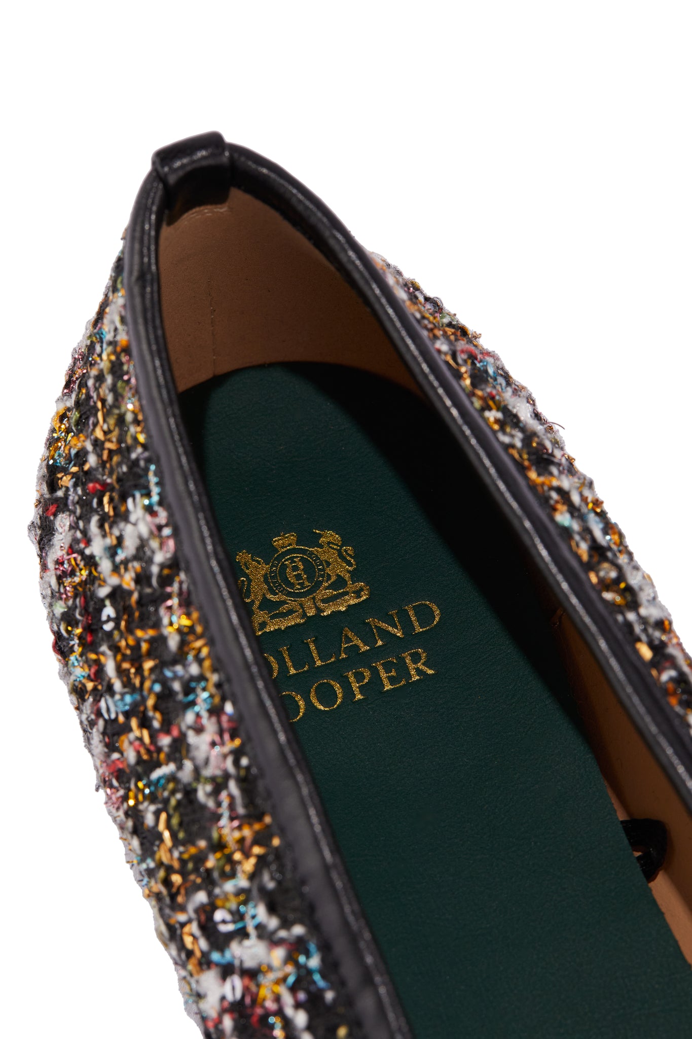 This refined slip-on silhouette showcases a luxurious textile upper adorned with delicate sequins, creating a subtle shimmer with every step. The contrast leather toe cap and binding add a sophisticated touch while ensuring durability. Crafted with comfort in mind, the padded footbed provides all-day wearability, while our signature green outsole offers a distinctive finish. A contemporary interpretation of a timeless classic, perfect for elevating any outfit.