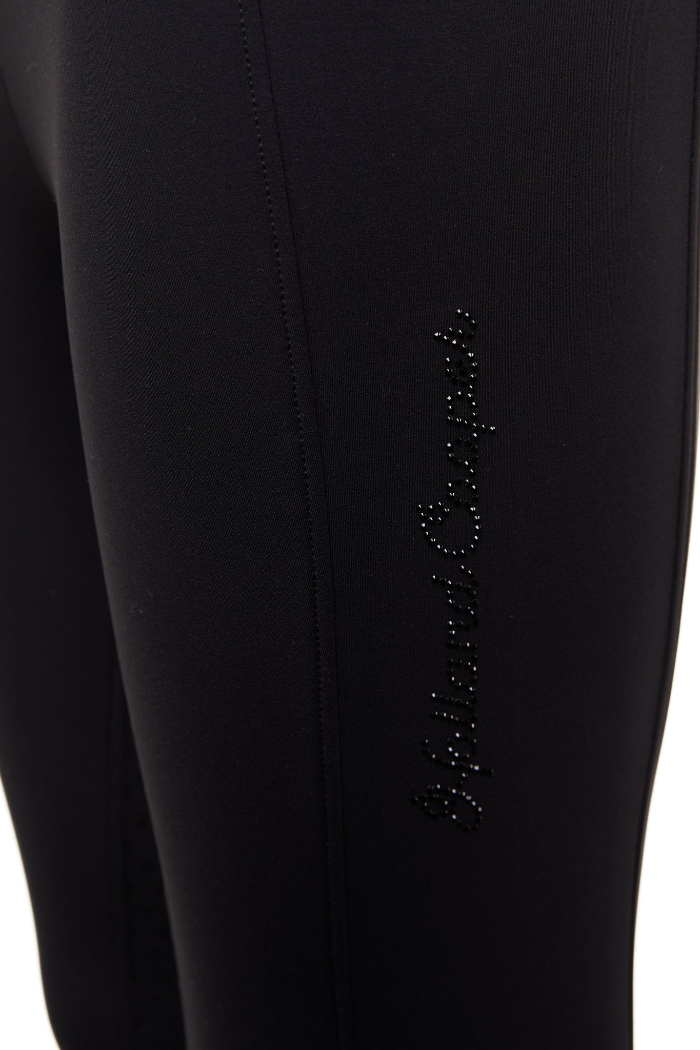 Lined with a luxuriously soft fleece, these water-resistant leggings were designed to ensure maximum movement and comfort whilst in and out of the saddle. High-waisted and made with a slim fit that lifts and contours your figure. Complete with monogrammed silicone riding knee grips and embellished with crystals to the leg.