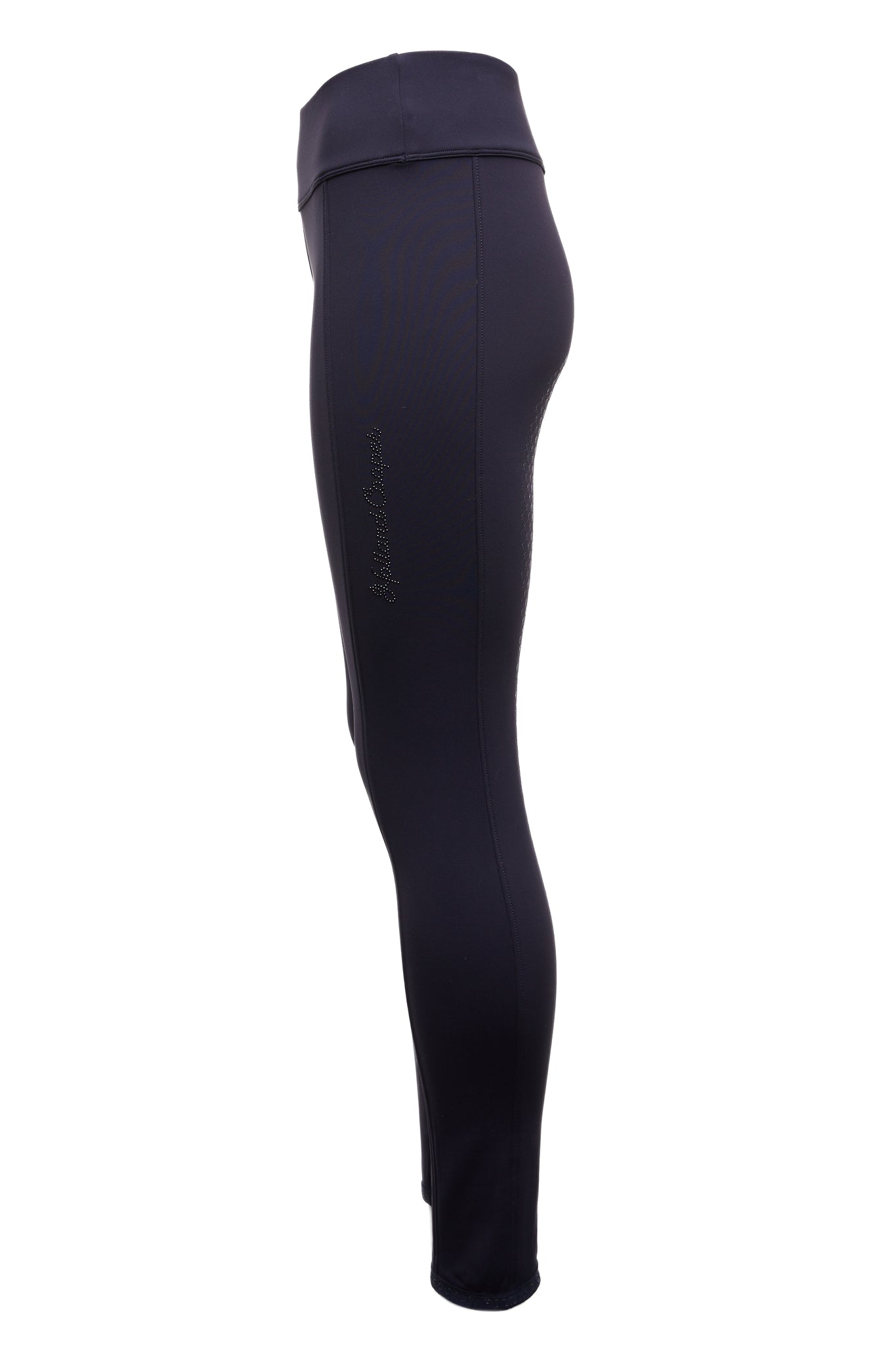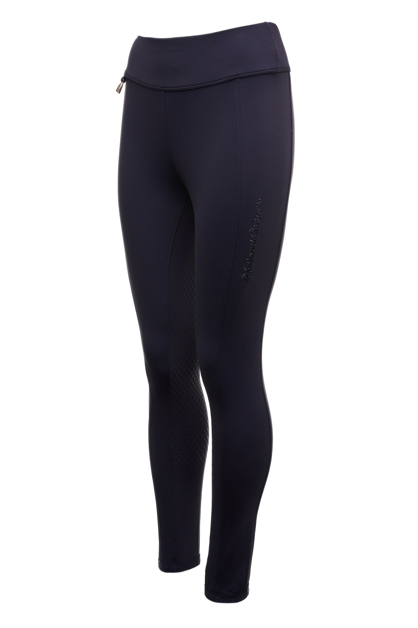 Lined with a luxuriously soft fleece, these water-resistant leggings were designed to ensure maximum movement and comfort whilst in and out of the saddle. High-waisted and made with a slim fit that lifts and contours your figure. Complete with monogrammed silicone riding knee grips and embellished with crystals to the leg.