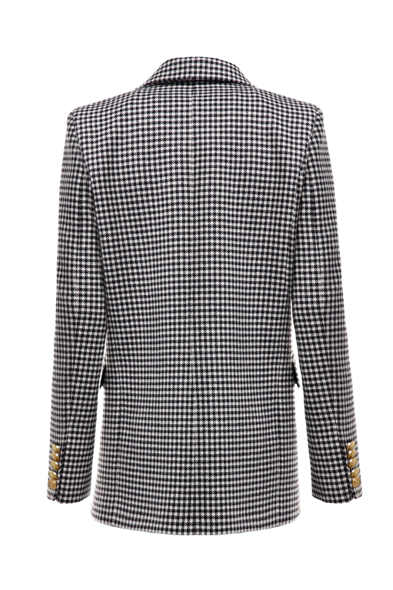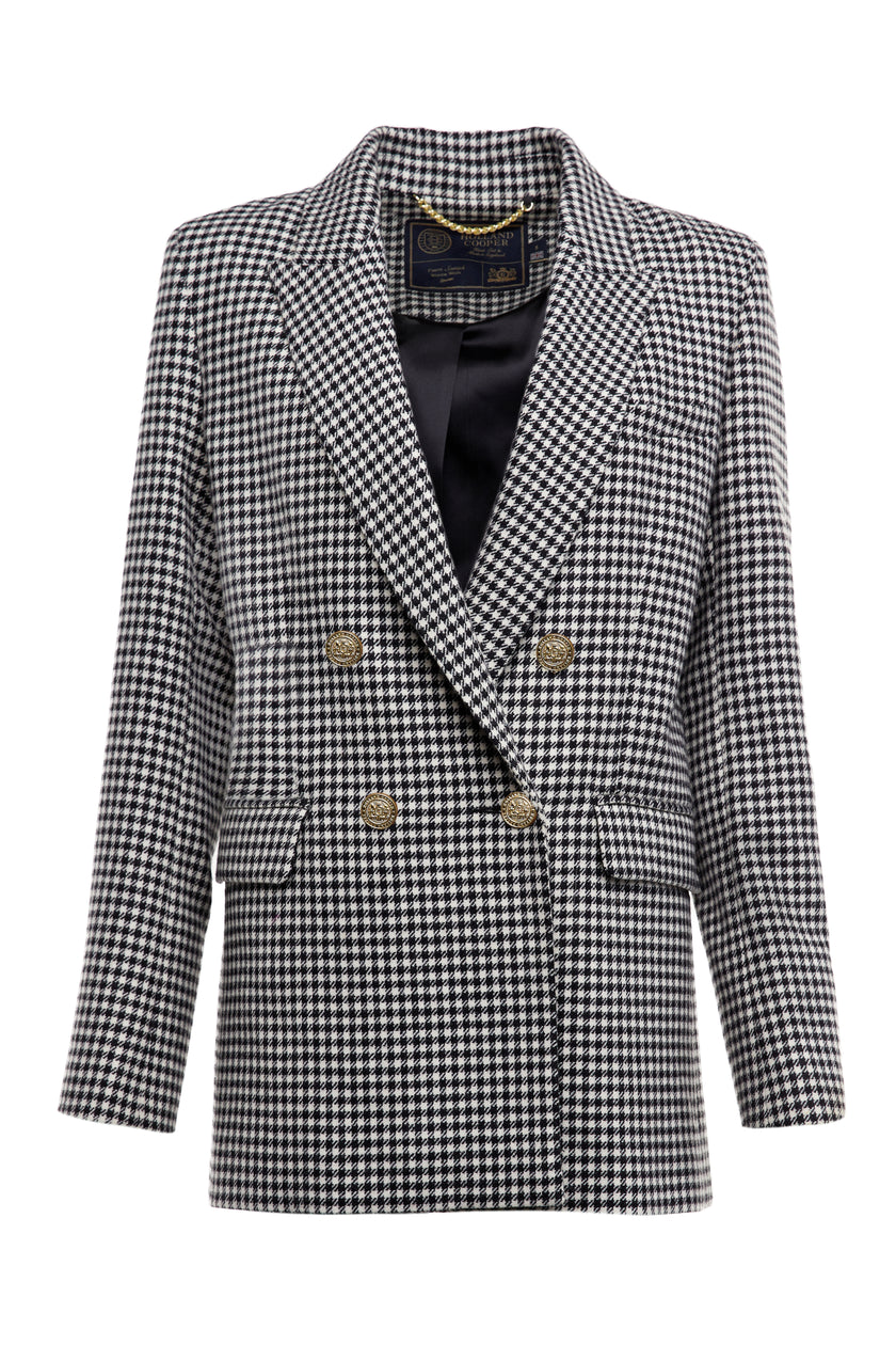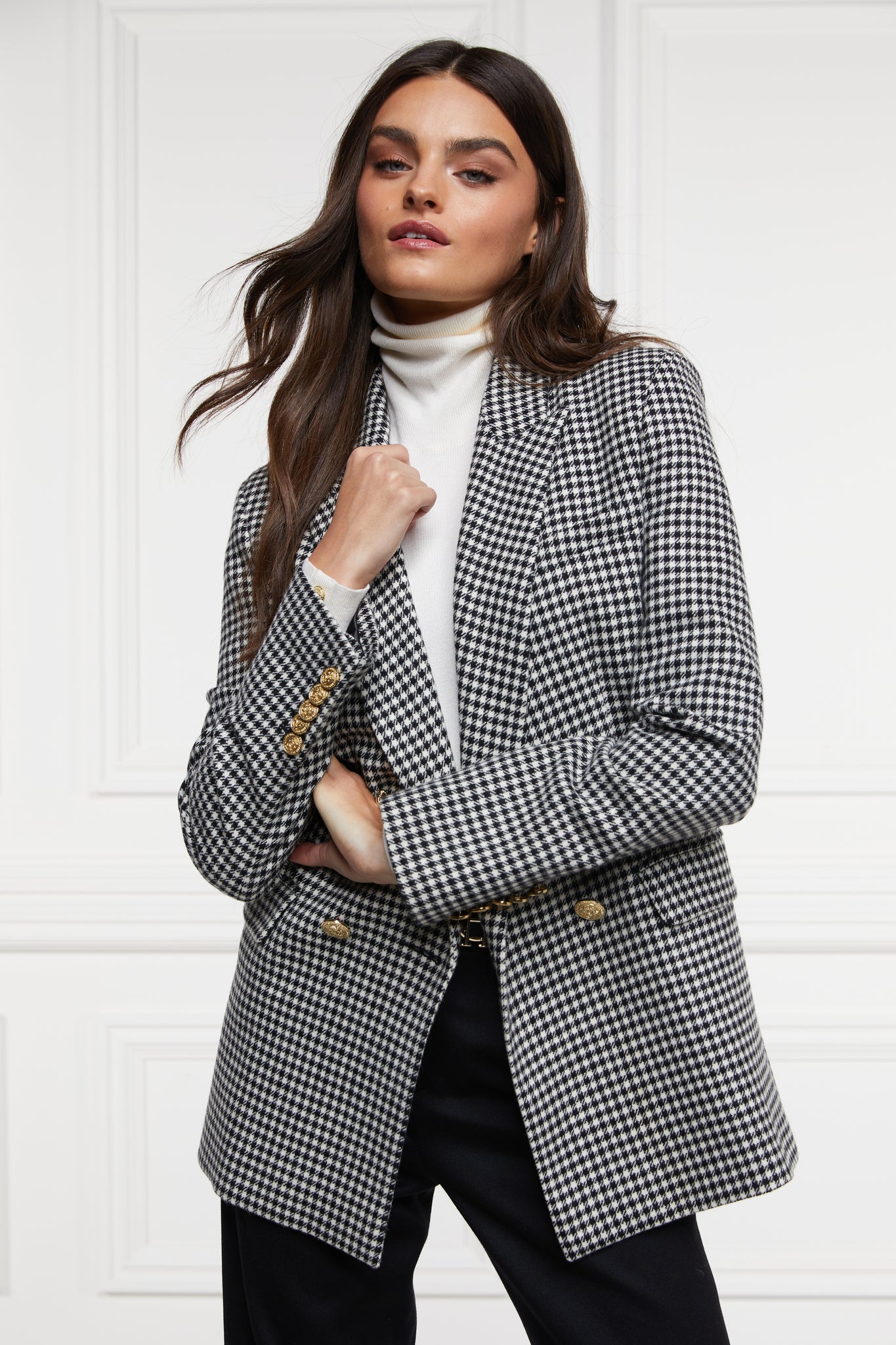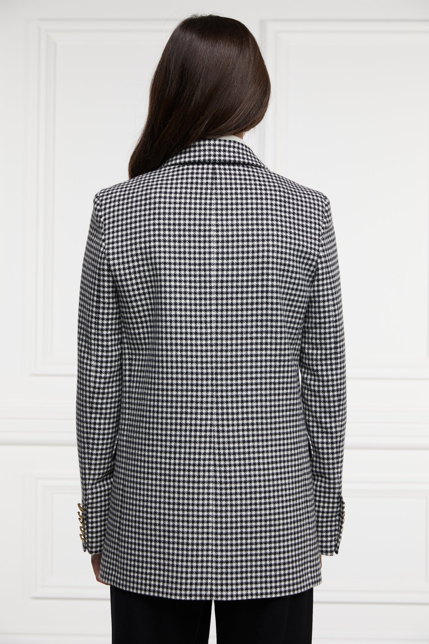 Hand-cut and made entirely in the UK, this blazer has been designed with a longline, double-breasted silhouette. Elegantly crafted to create a sharp tailored fit worn open or closed, it has peak lapels, subtle padded shoulders and is fully lined in satin for easy layering. Detailed with signature HC gold buttons on the front and cuffs.