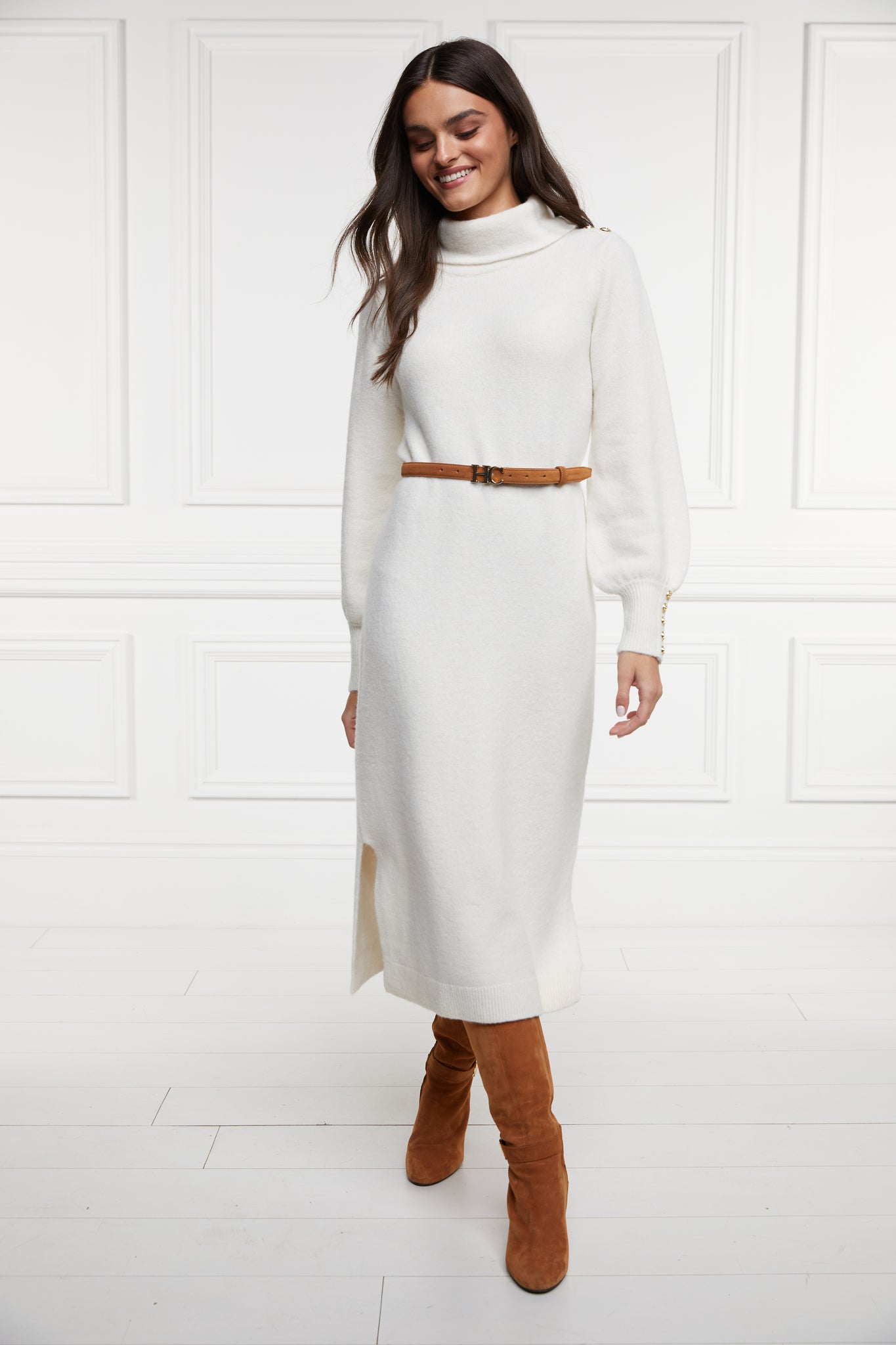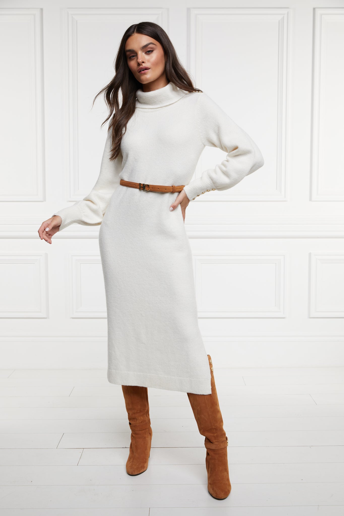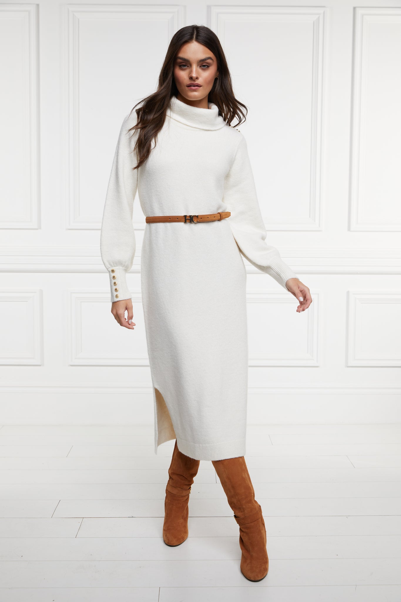 Designed to fall loosely over your silhouette, this dress has been crafted from a soft wool blend. With voluminous sleeves with a ribbed cuff finish, the subtle roll neck ensures a classic, yet contemporary fit. Complimented by our iconic gold hardware. -