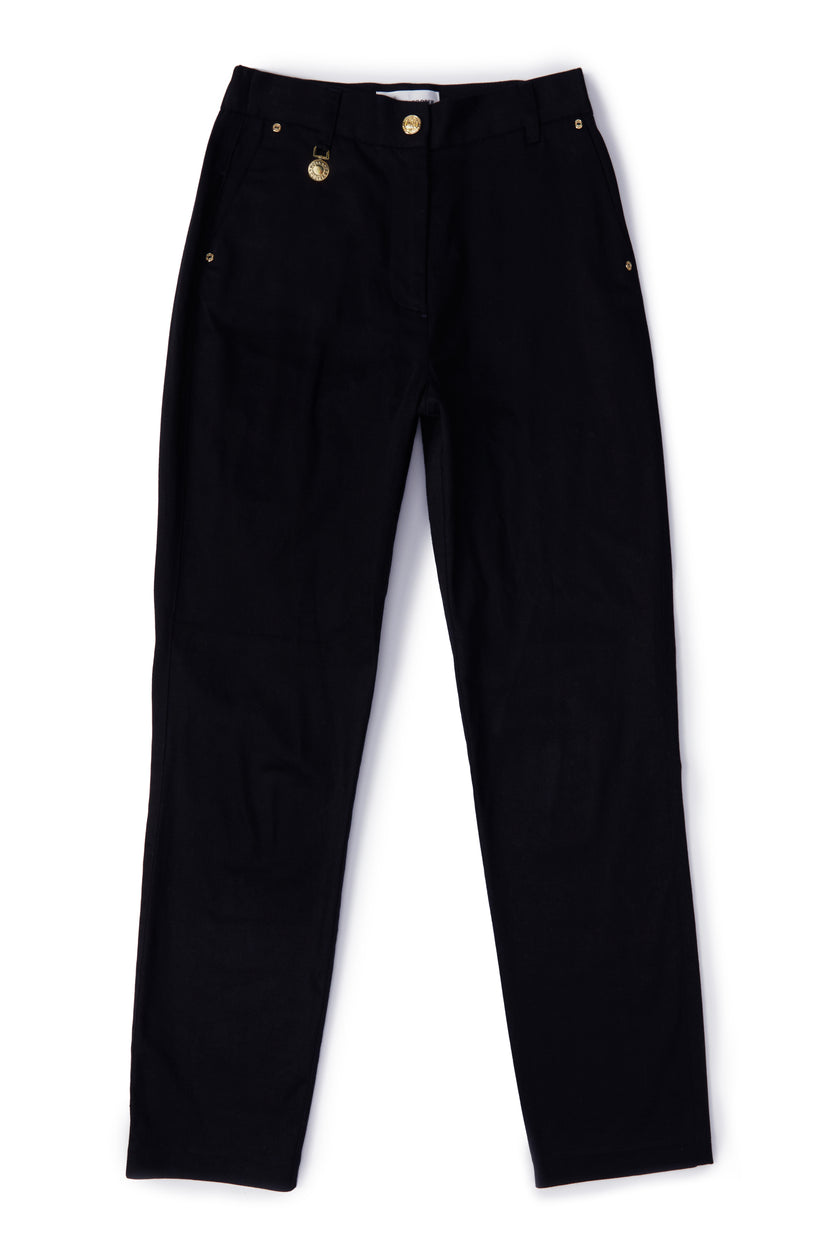 Beautifully tailored for a flattering slim fit, these trousers have been designed with a high rise waist with hidden elastication for extra comfort. Made from a soft stretch twill fabric with a classic cigarette cut, these trousers are perfect for every day wear. Adorned with our signature gold HC hardware.