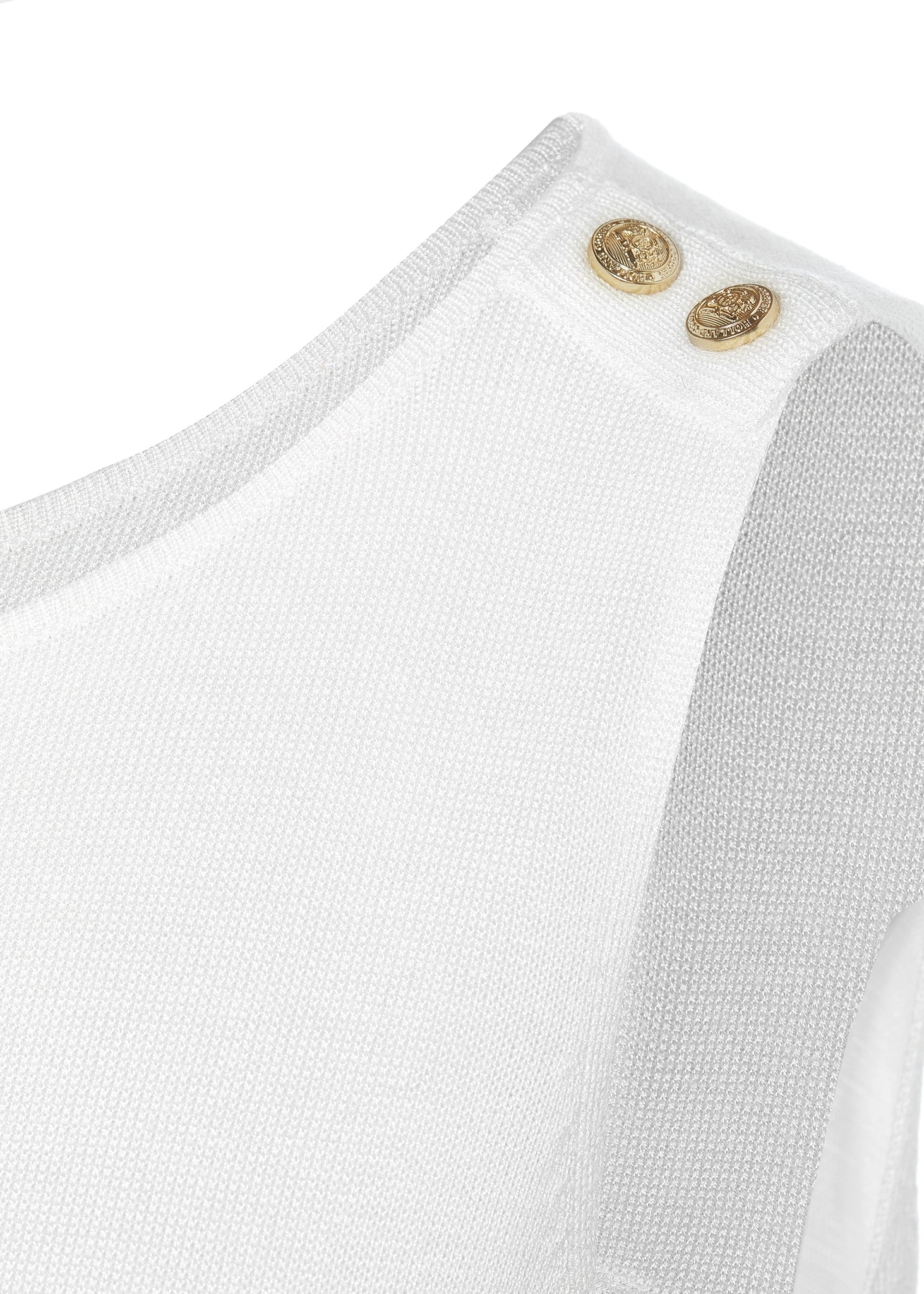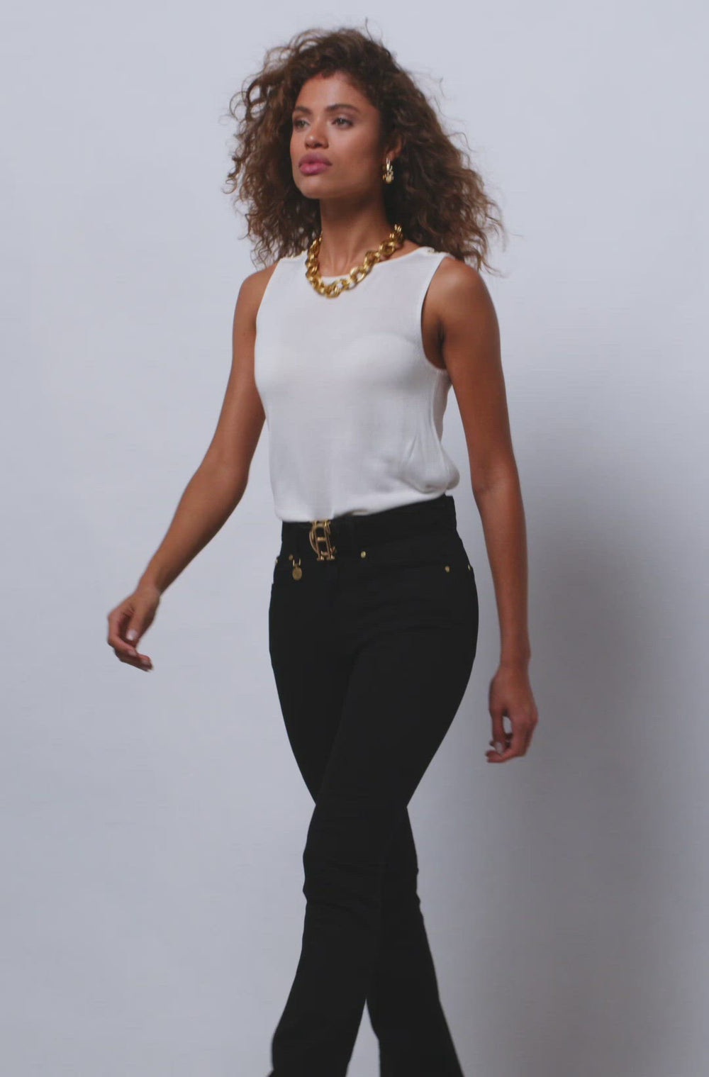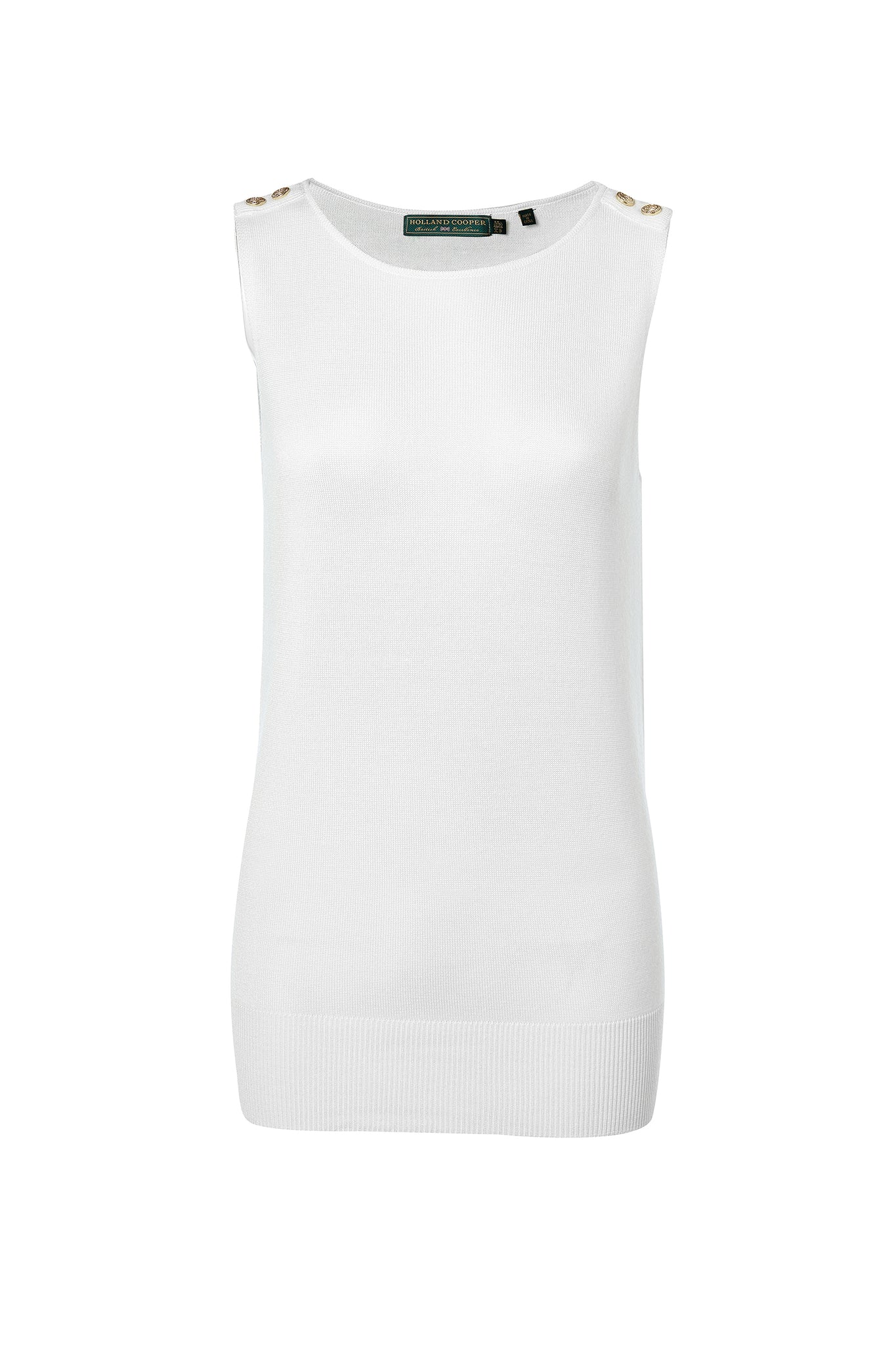 This luxury sleeveless, fine knit boat neck vest is a staple piece for your everyday wardrobe. Designed with a sleek slash neck and a deep ribbed hem with side splits for a relaxed, easy-to-wear basic. Pair with our Jodhpur Jeans or our Amoria Tailored Shorts for a piece that you will find yourself reaching for over and over again. Detailed with our signature branded hardware.