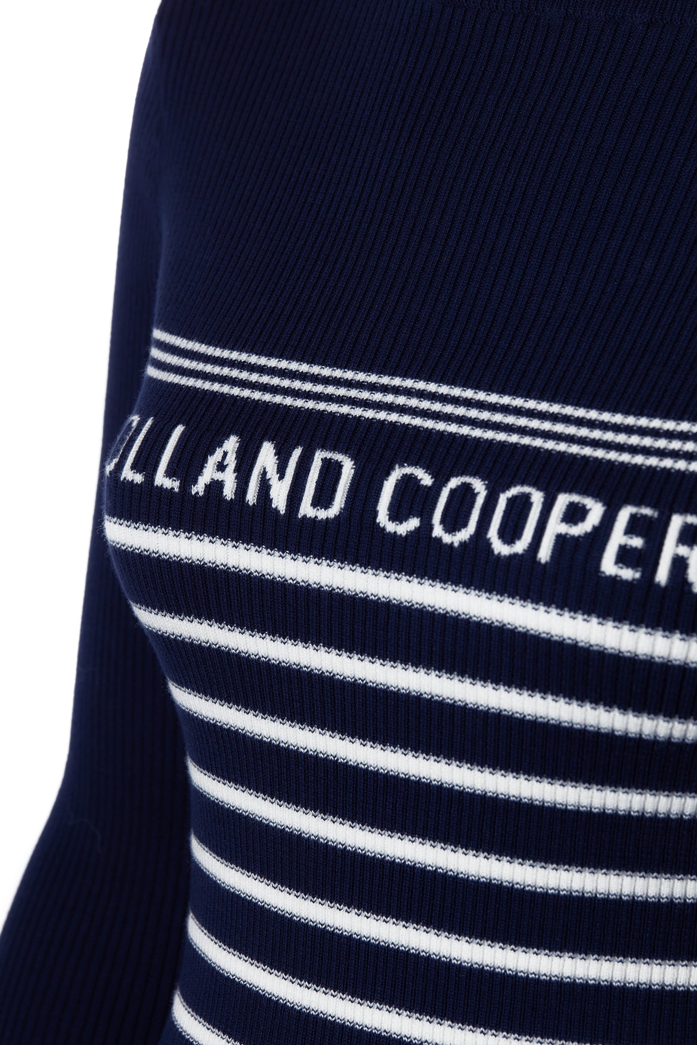 Beautifully crafted from supersoft yarn, this knit has been designed with a slim fit and elegant boat neck. The ribbed knit is adorned with Bretton stripes and an eye-catching Intarsia Holland Cooper graphic on the chest, creating a modern yet classic aesthetic. Detailed with fluted sleeves and striped cuffs, our iconic gold hardware elevates this everyday essential.