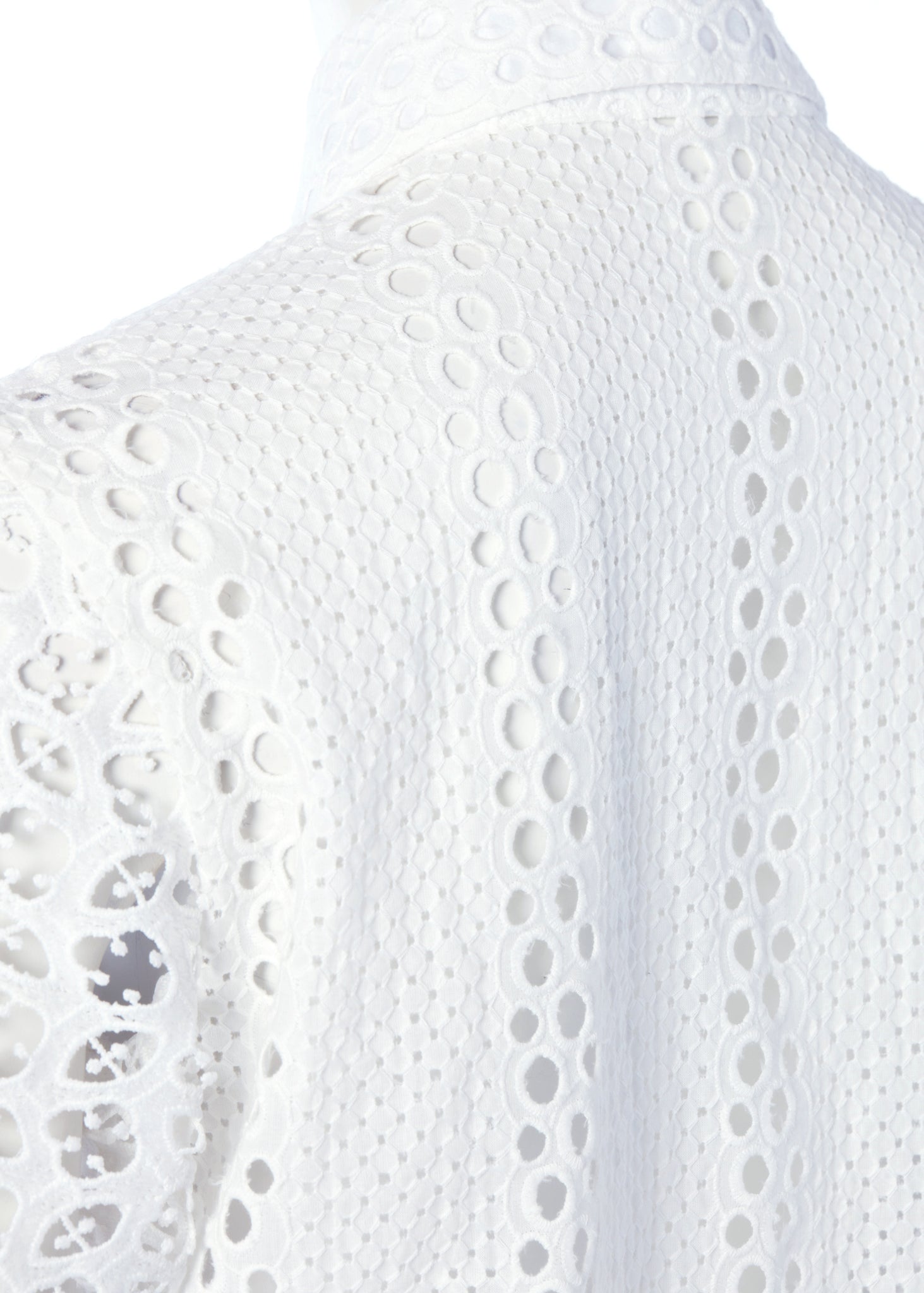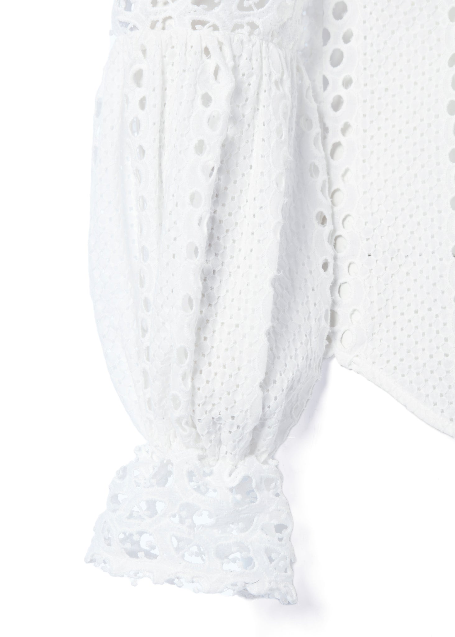 Designed with a feminine silhouette with romantic style sleeves, this shirt has been beautifully created with a traditional lace fabrication technique. With an elegant buttoned front and french interior seams, our design team have perfectly created a vintage style daily essential.
