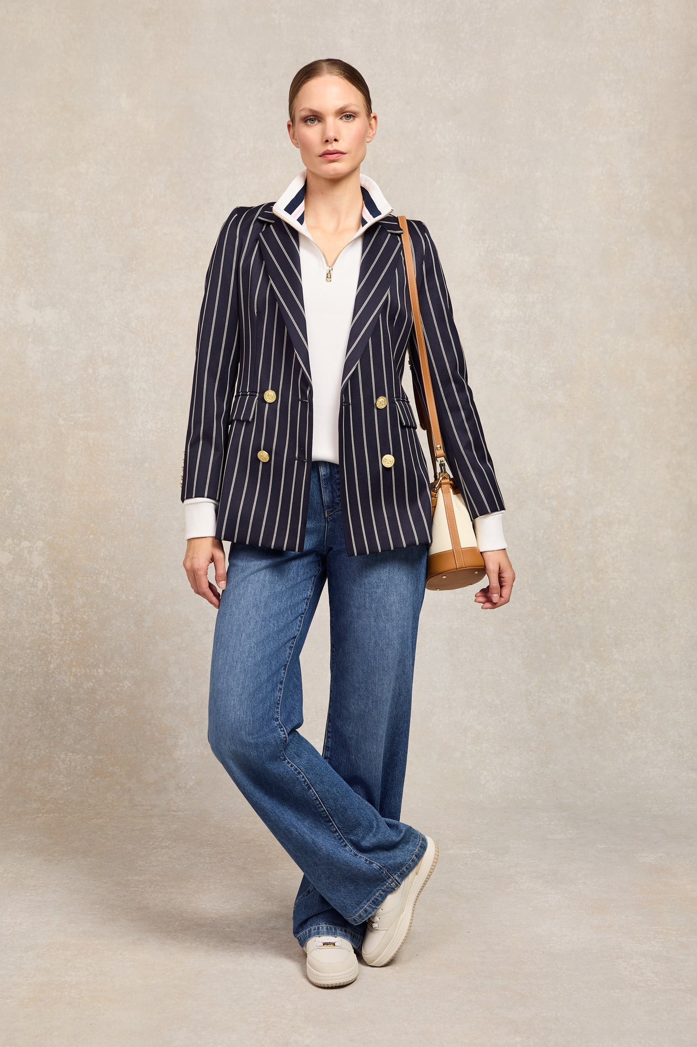 This refined sweater features sophisticated details including contrast embroidery at the chest and a distinctive striped knitted rib collar. The raglan sleeve construction ensures a comfortable, natural fit while ribbed cuffs and hem create a polished silhouette. An essential piece that seamlessly bridges smart and casual occasions.