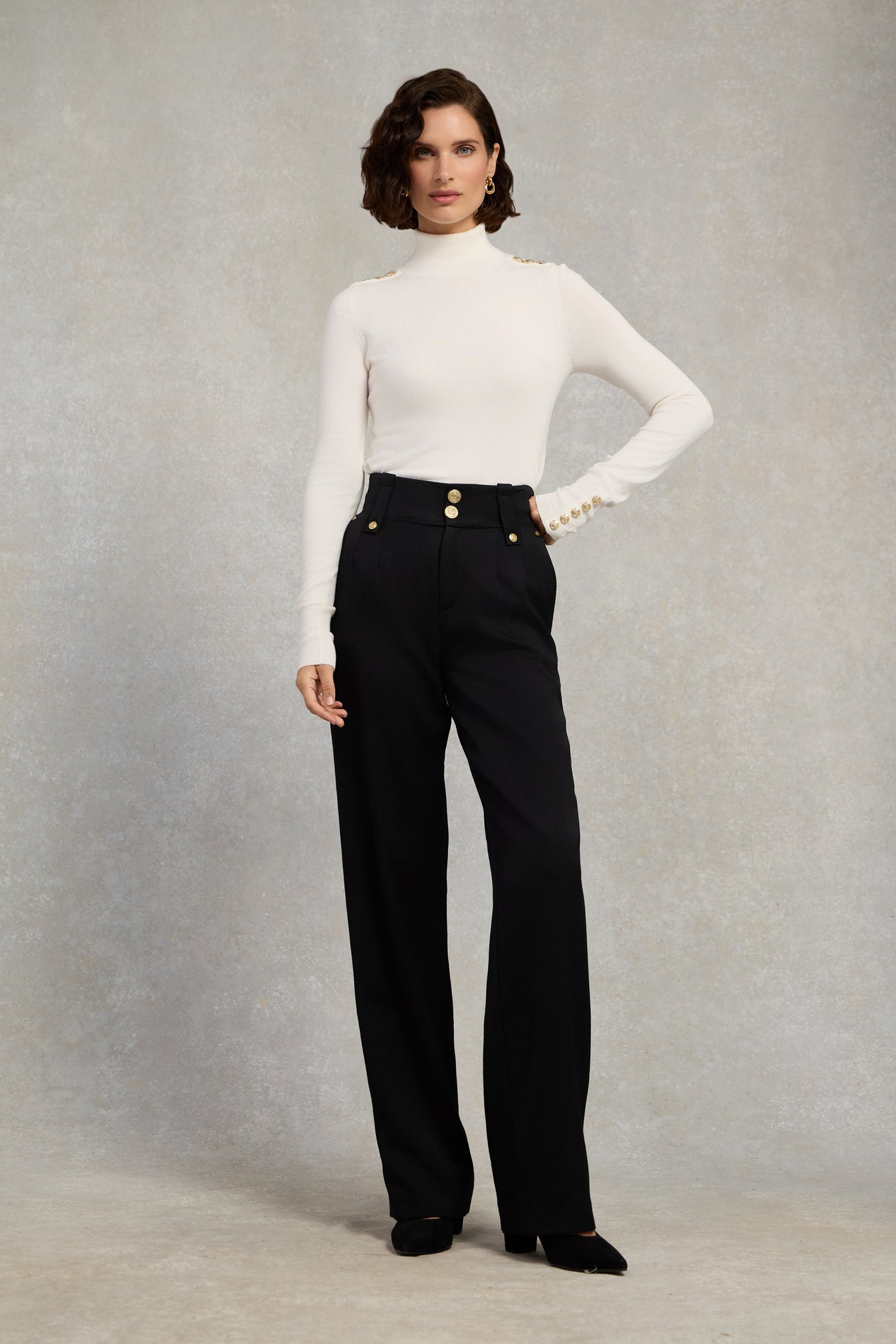 Introducing HC's update to the buttoned knit crew neck, now with our signature hardware on both shoulders, to form part of your signature look. Complete every outfit with this stylish, classic and easy to wear wardrobe staple.
