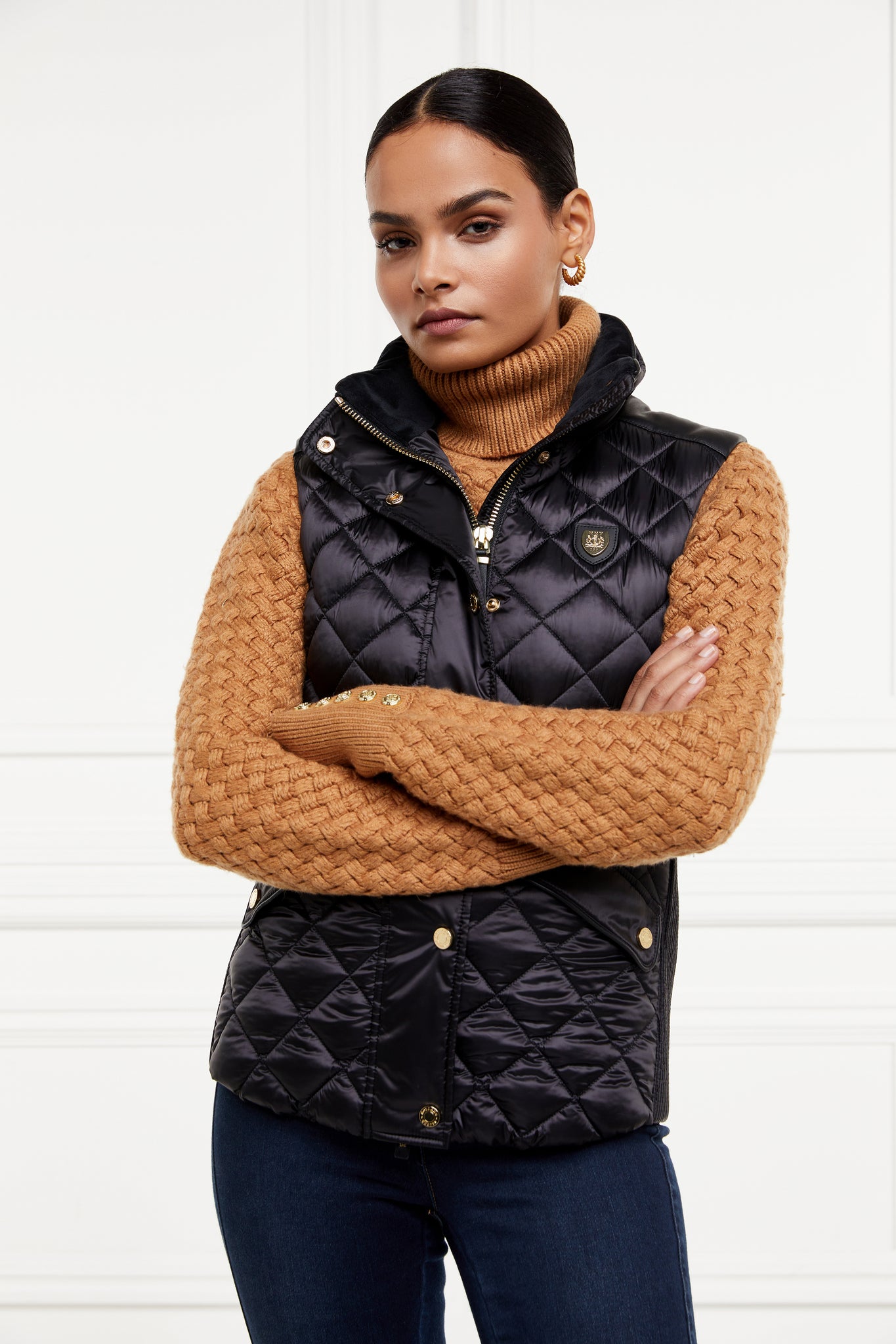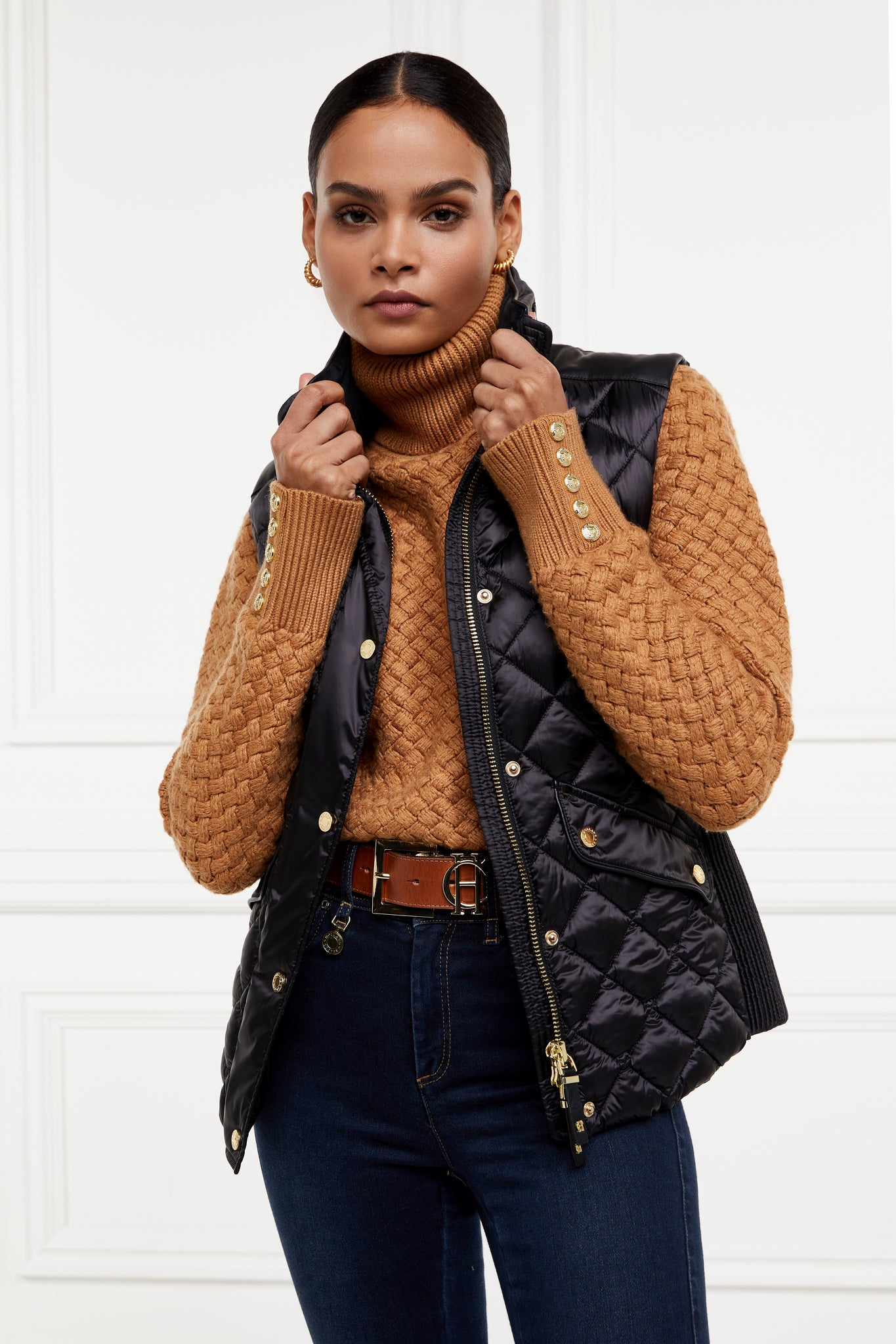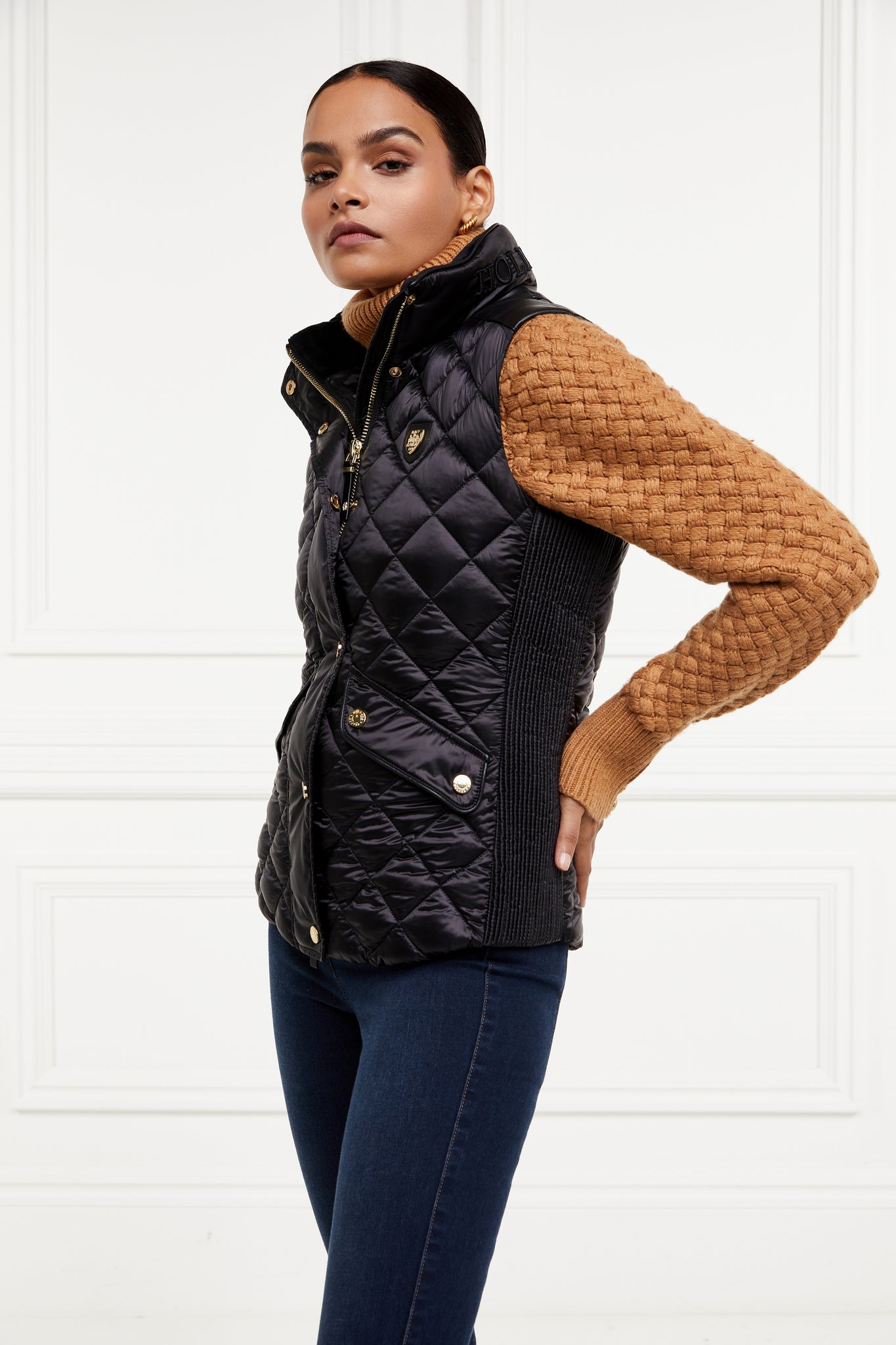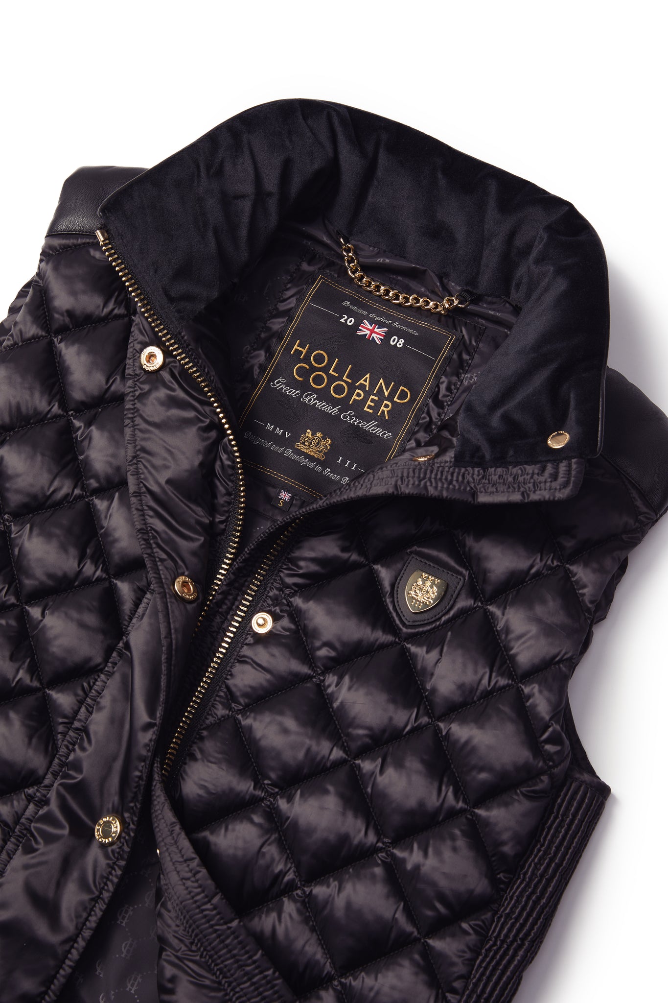 Made from a sumptuously soft high-shine fabric and filled with a premium Sorona eco fill, this gilet has been designed with a slim fit and shirred side panels. Adorned with faux leather piping and trim to the pocket. Finished with our iconic HC badge on the chest and HC embroidery to the collar.
