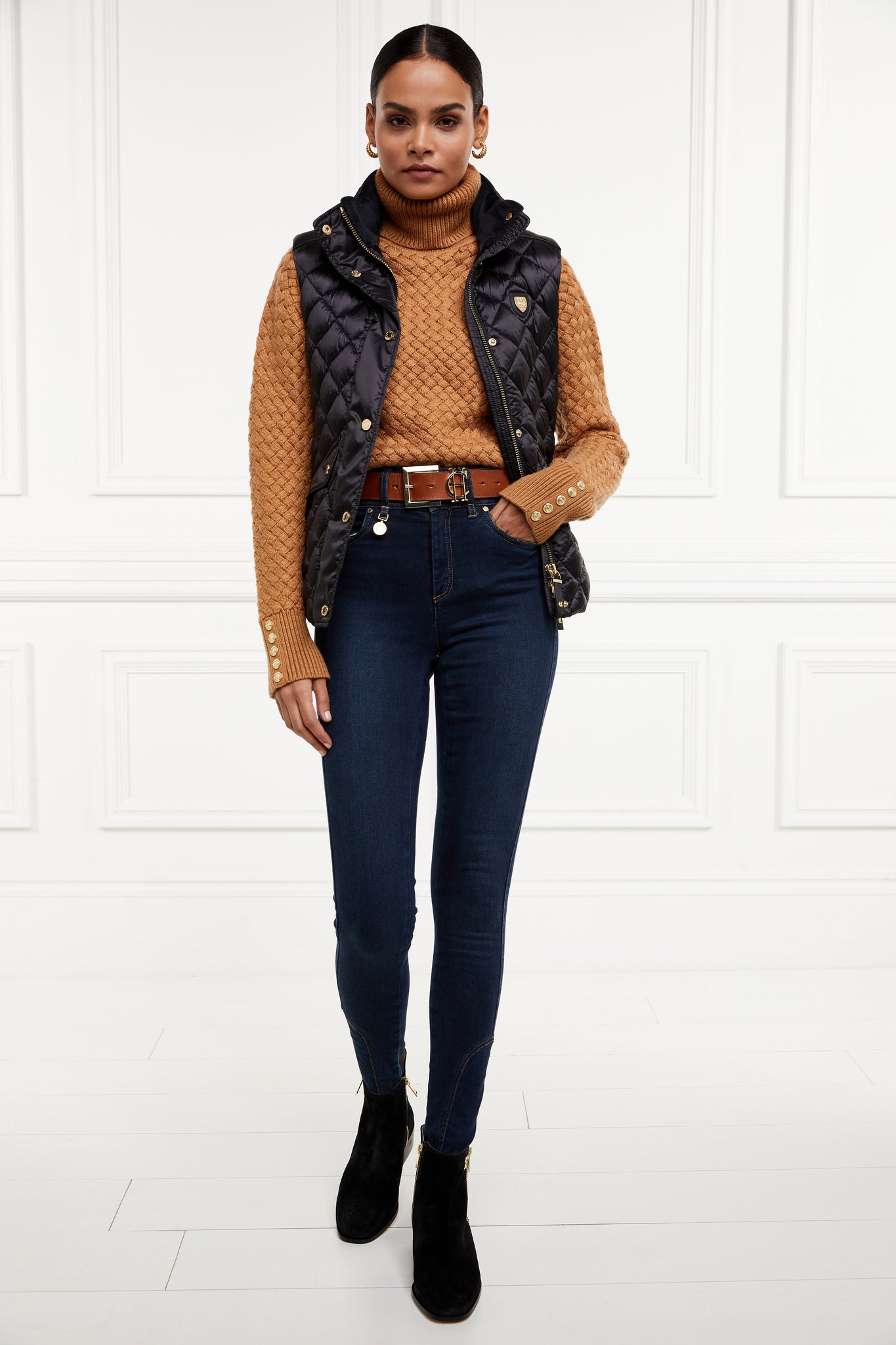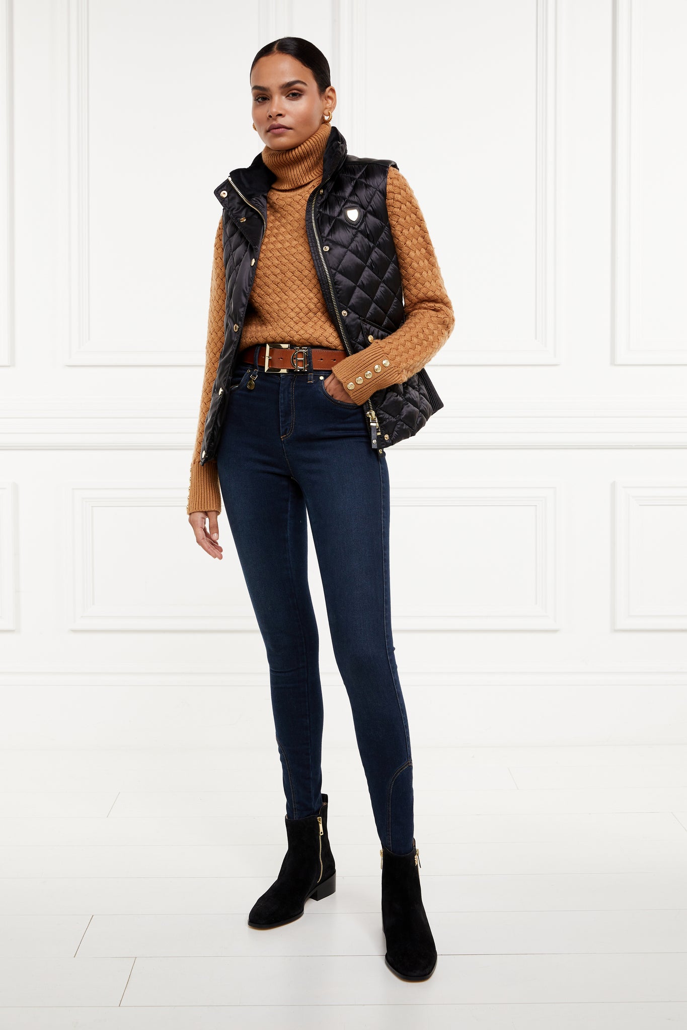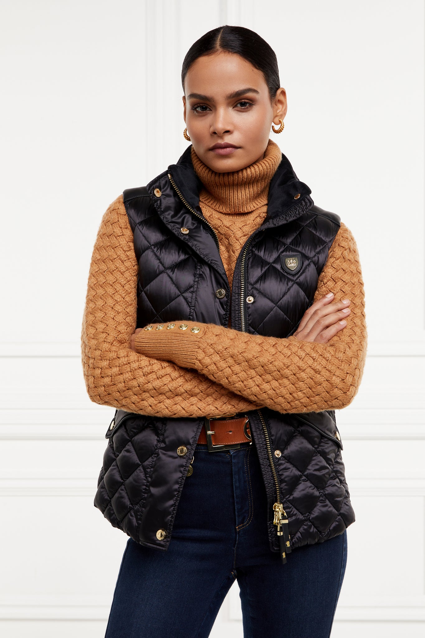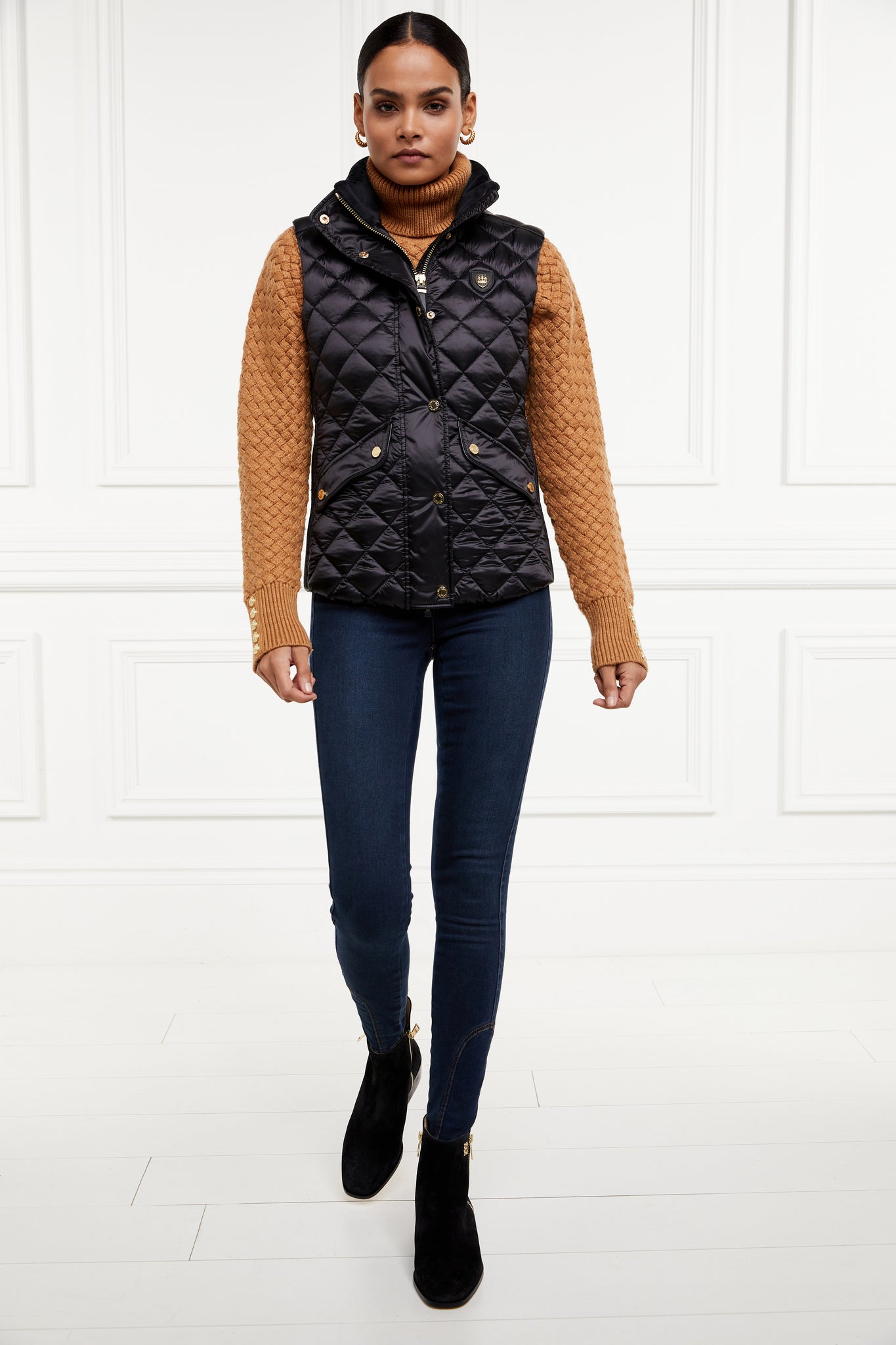 Made from a sumptuously soft high-shine fabric and filled with a premium Sorona eco fill, this gilet has been designed with a slim fit and shirred side panels. Adorned with faux leather piping and trim to the pocket. Finished with our iconic HC badge on the chest and HC embroidery to the collar.