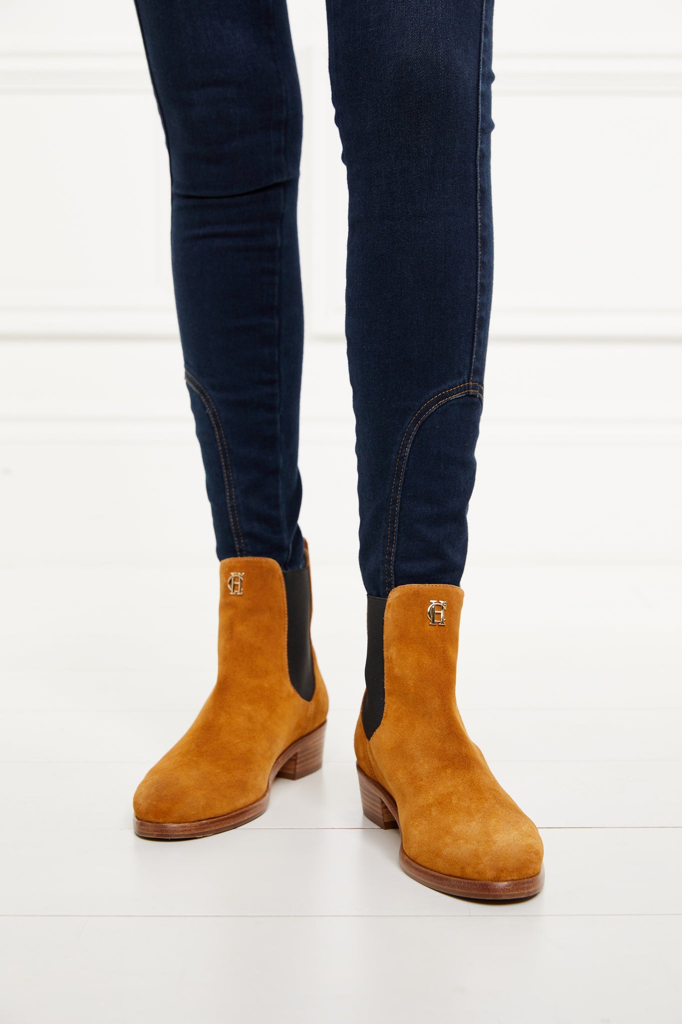 Designed with comfort in mind, our sophisticated take on the timeless chelsea boot is made from a premium suede & fully lined in luxurious leather. Finished with our iconic gold HC branding on the front and simple gold rivet on the heel to perfectly elevate this everyday essential.