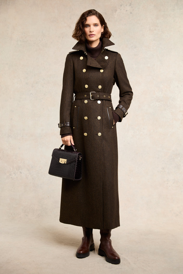 Combining classic tailoring with our exciting heritage, our iconic Full Length Marlborough Trench Coat has been handmade in the UK with the utmost care and attention. Tailored for a slim fit with a longline silhouette, its double breasted-front and belted waist adds to the flattering definition that stands at the forefront of its design. Beautifully elevated with statement lapels, military-inspired epaulettes and HC's iconic hardware. For a bold statement, wear open to allow for a fluid drape and movement.
