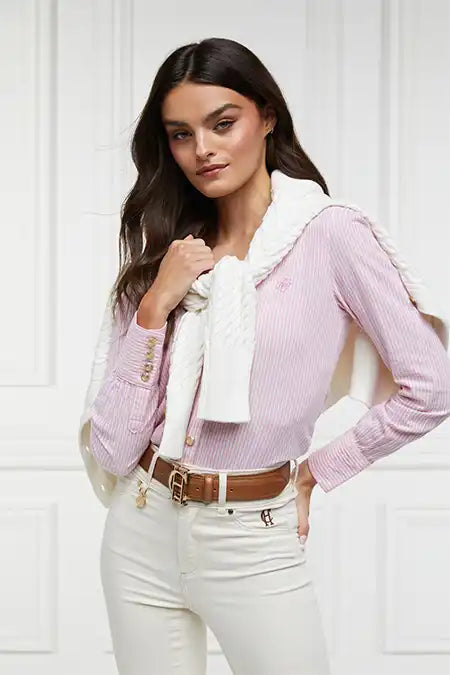 Crafted from lightweight cotton and boasting preppy-style stripes, this shirt combines a relaxed fit with a touch of sophistication. Featuring subtle details, the small embroidery on the front chest and our signature gold metal hardware elevate this traditional style.