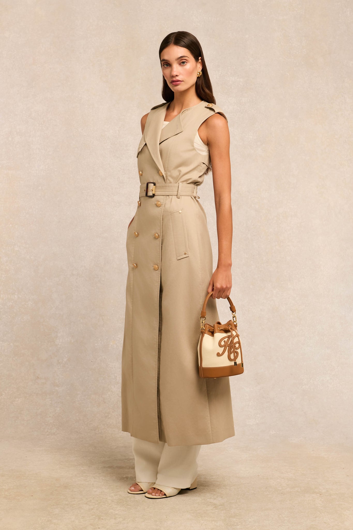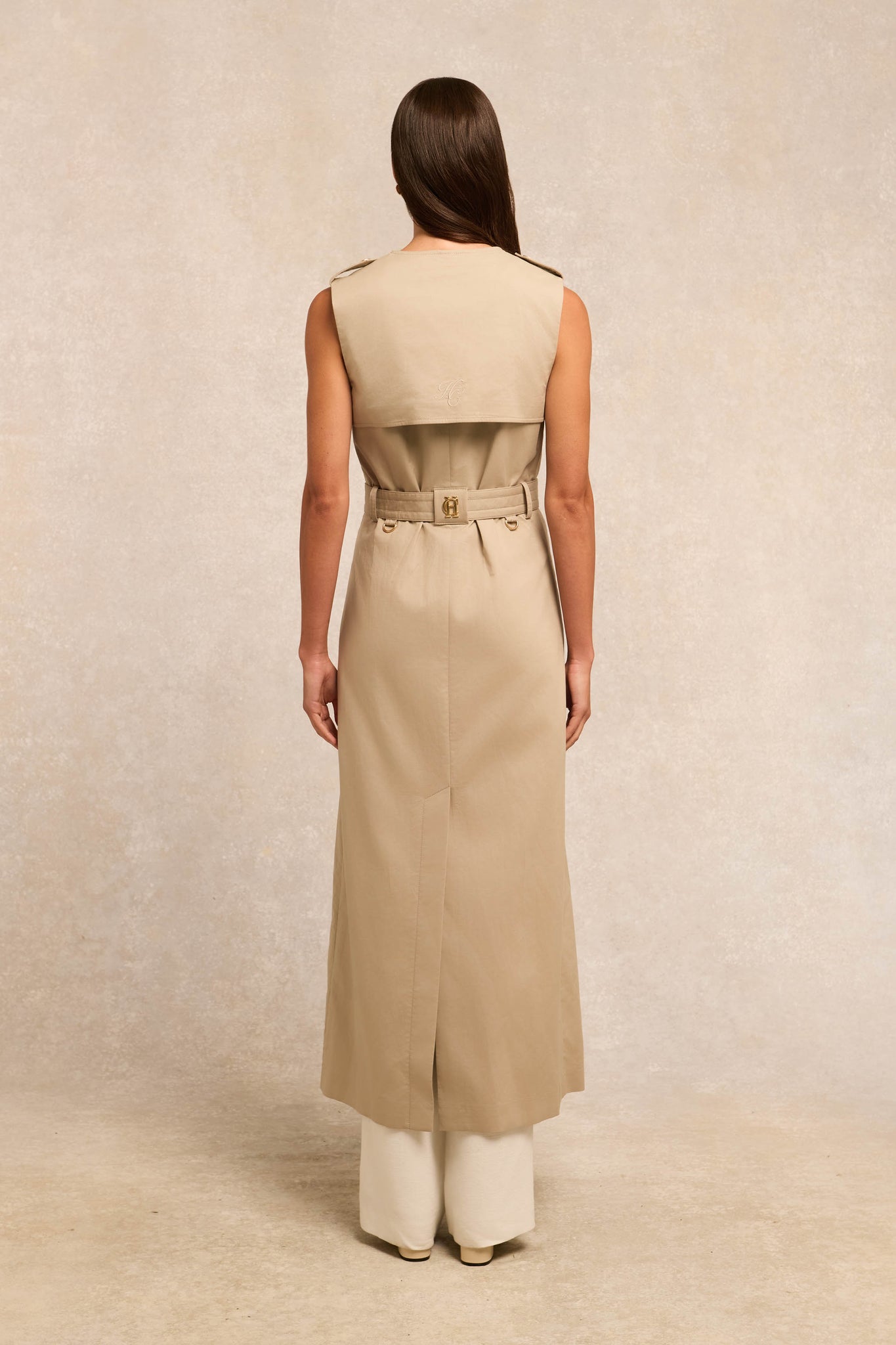 Crafted from pure cotton in a sophisticated waffle texture, this contemporary take on a timeless silhouette offers a fresh perspective on luxury outerwear. The minimalist collarless design creates a clean, modern aesthetic to the gilet while enabling versatile layering options. Flowing with a relaxed drape, the lightweight construction ensures everyday wearability, while considered details - including premium gold hardware and tortoiseshell buckles - elevate the piece with subtle sophistication. A masterclass in understated elegance.