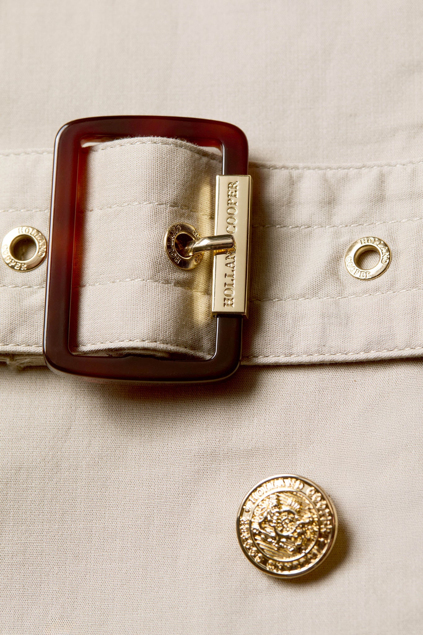 - Modern twist on a classic trench style