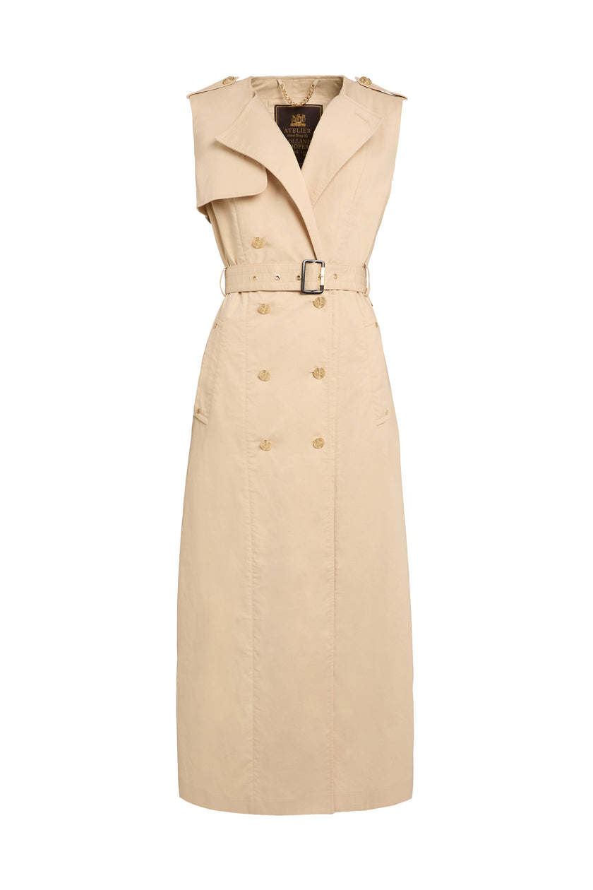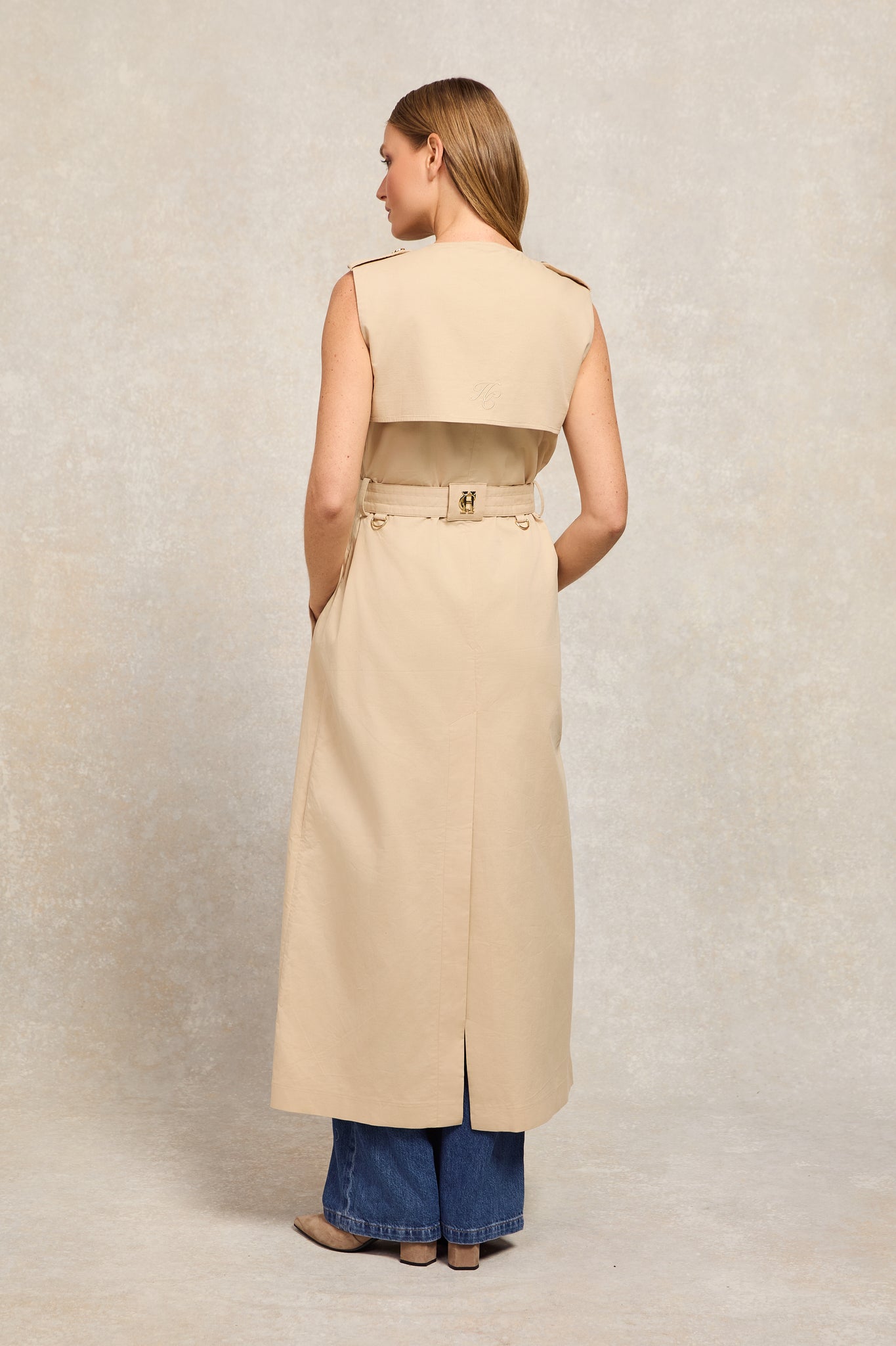 Crafted from pure cotton in a sophisticated waffle texture, this contemporary take on a timeless silhouette offers a fresh perspective on luxury outerwear. The minimalist collarless design creates a clean, modern aesthetic to the gilet while enabling versatile layering options. Flowing with a relaxed drape, the lightweight construction ensures everyday wearability, while considered details - including premium gold hardware and tortoiseshell buckles - elevate the piece with subtle sophistication. A masterclass in understated elegance.