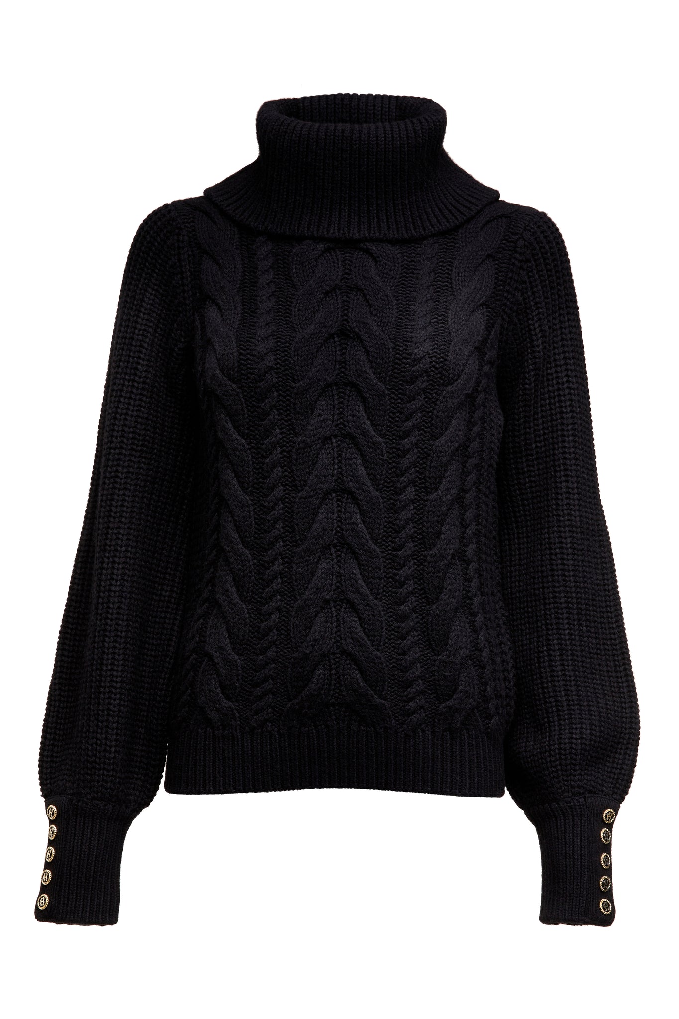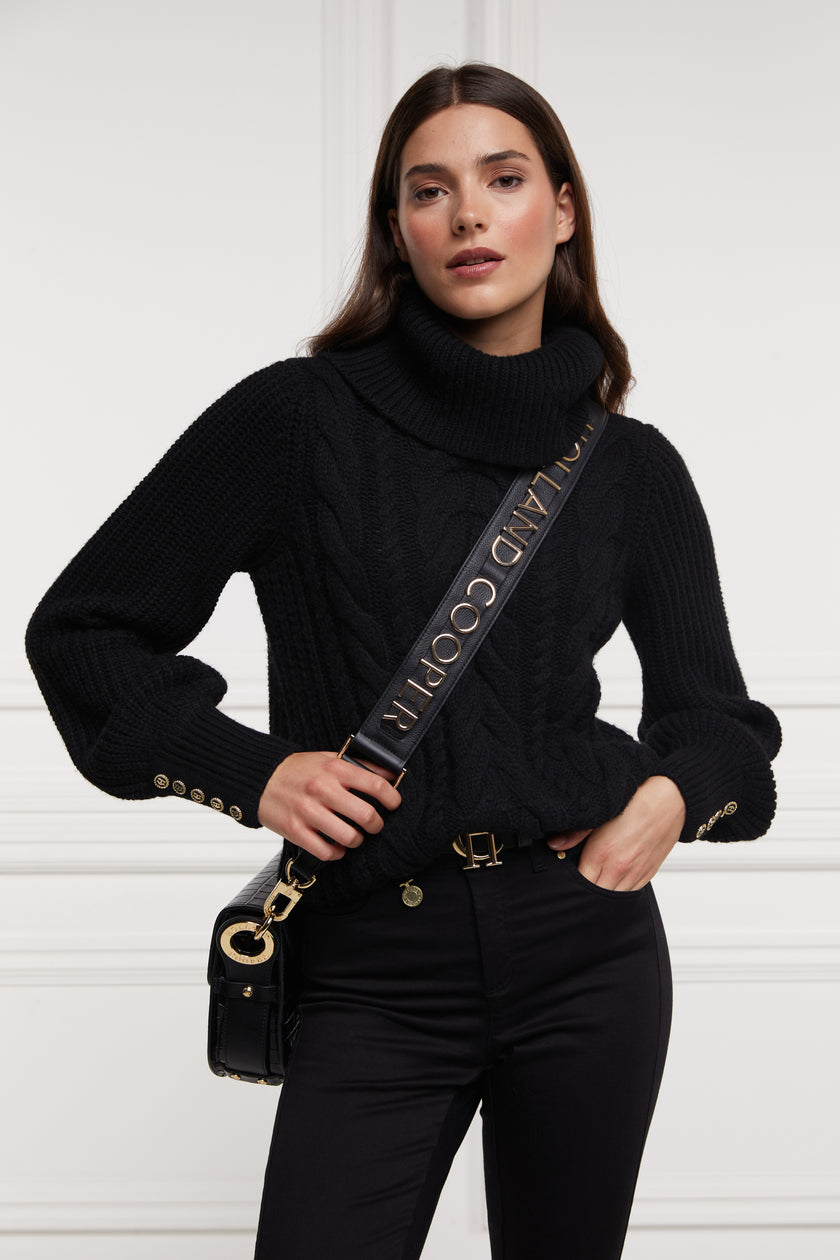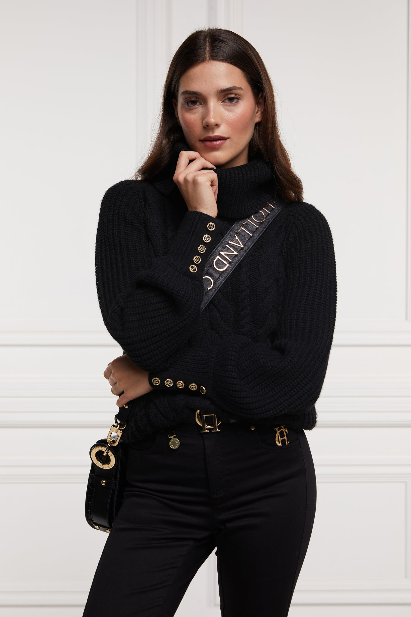 Crafted from a wool blend that's soft to the touch, this classic cowl neck knit has been designed with a slim fit through the main body. Designed with a voluminous sleeve and cuffed finish for a feminine silhouette. Detailed with our iconic gold rivets.
