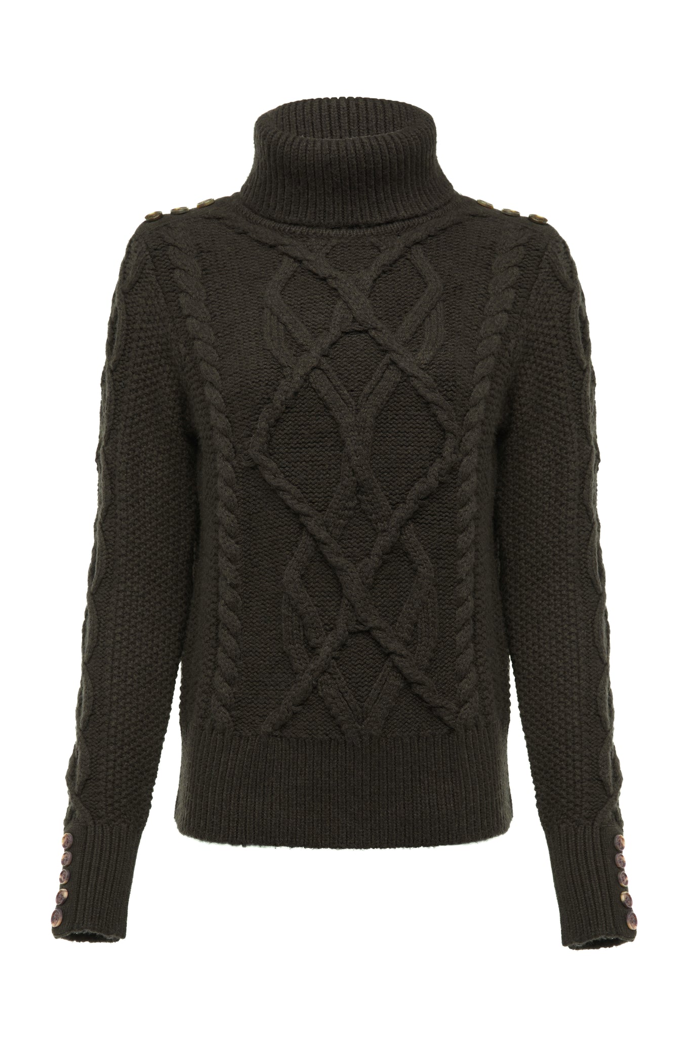Meticulously designed with comfort and wearability in mind, this roll neck knit is a timeless classic that your will be reaching for in years to come. Made with luxuriously soft wool with slimming panels featuring on the sides and running down the sleeves. With a flattering roll neck collar and a subtle raised cable to the body, this knit has all the attention to detail you would expect from Holland Cooper. Finished with our subtle horn-style buttons.