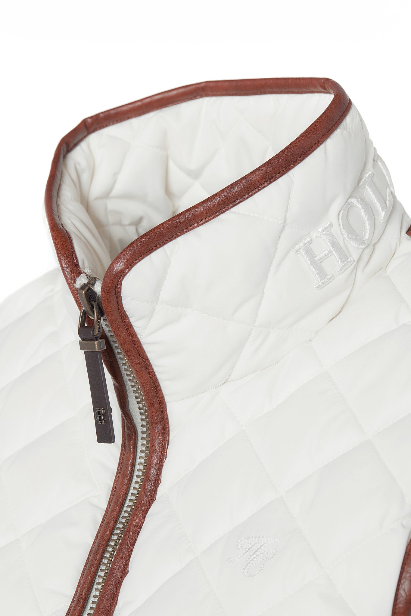 Beautifully designed with a slim fit, this classic length gilet has been lightly filled with Sorona® eco fill. Detailed with faux leather piping around the edges and finished with our antique brass fastenings and HC embroidery to the collar. This timeless classic is needed in every wardrobe and is perfect for layering.