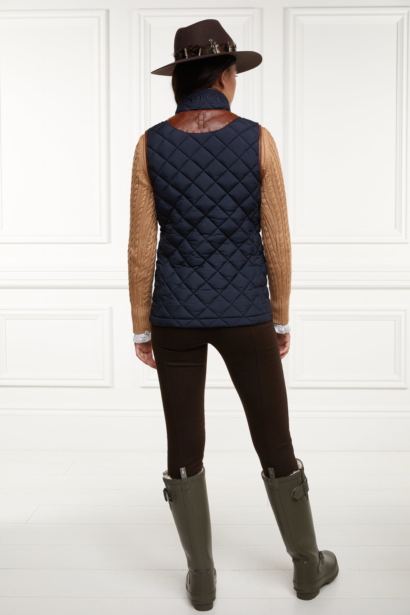Designed with a slim fit & shorter length, this gilet is ideal for layering. Created from a traditional quilted fabric with a lightweight & breathable fill. Curated with welt pockets to the front with a full zip closure, the faux leather piping adds to the country aesthetic of this piece. Finished with antique brass hardware and iconic Holland Cooper branding.
