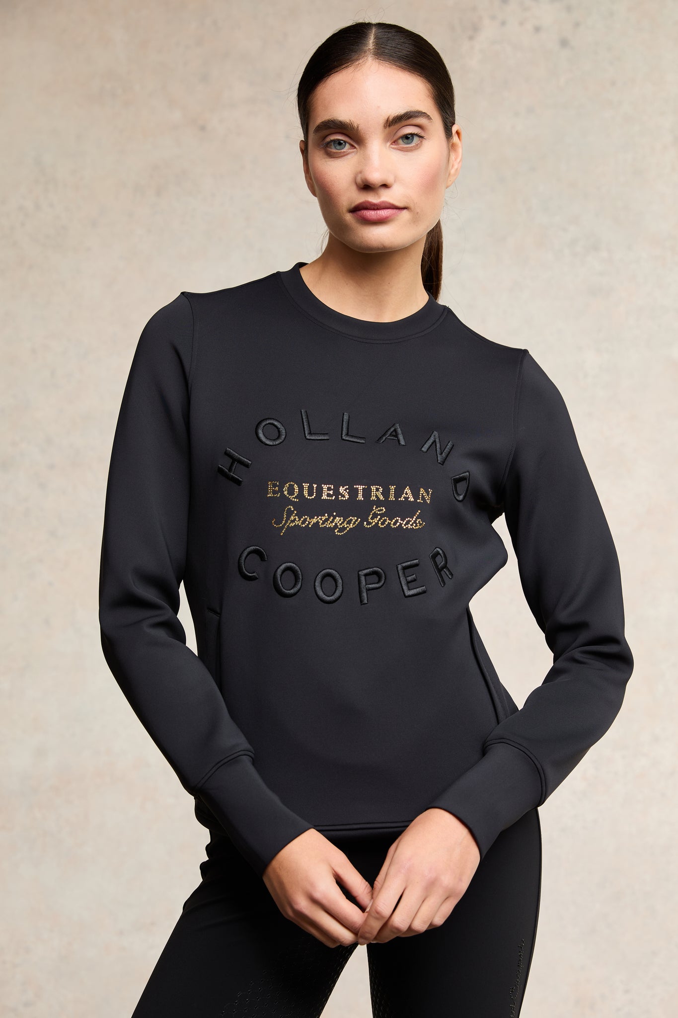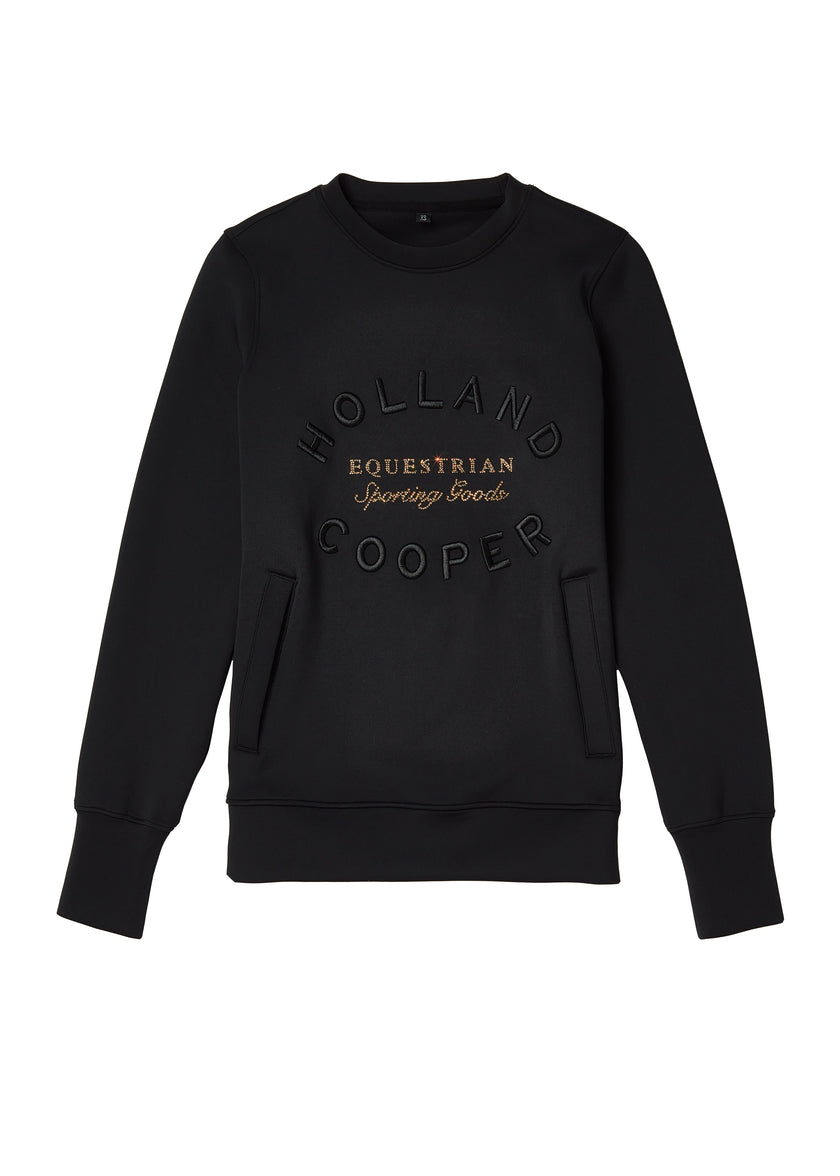 Crafted from smooth, soft-touch fabric for ultimate comfort. Designed with a relaxed fit and set-in sleeves, it offers a laid-back yet polished look. The high build embroidery with feature crystal branding on the chest adds a touch of equestrian elegance and sparkle. With welt side pockets for practicality, this sweatshirt seamlessly combines style and convenience for everyday wear.
