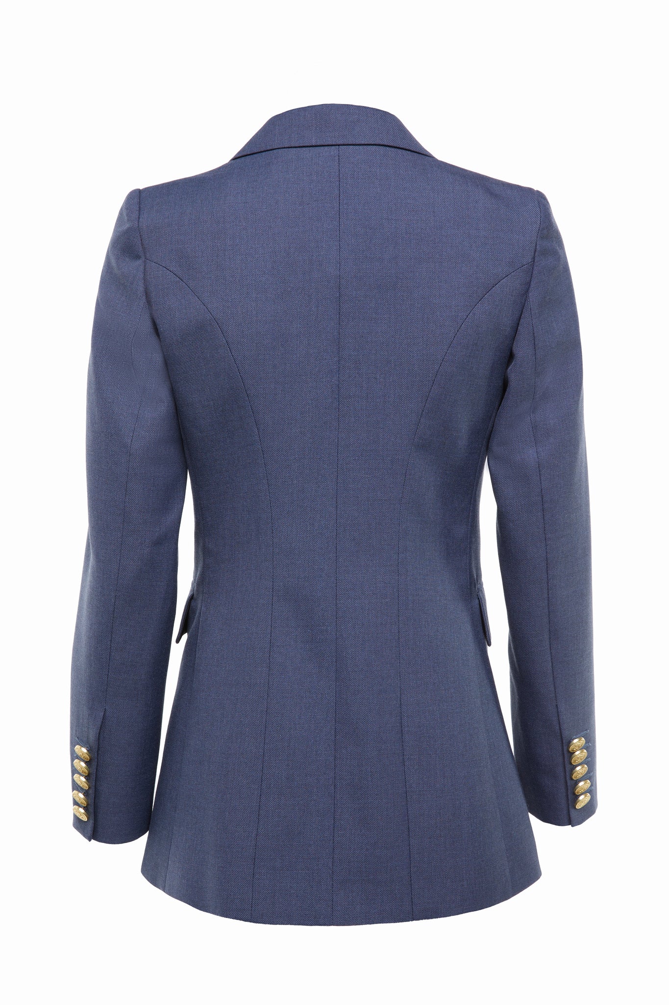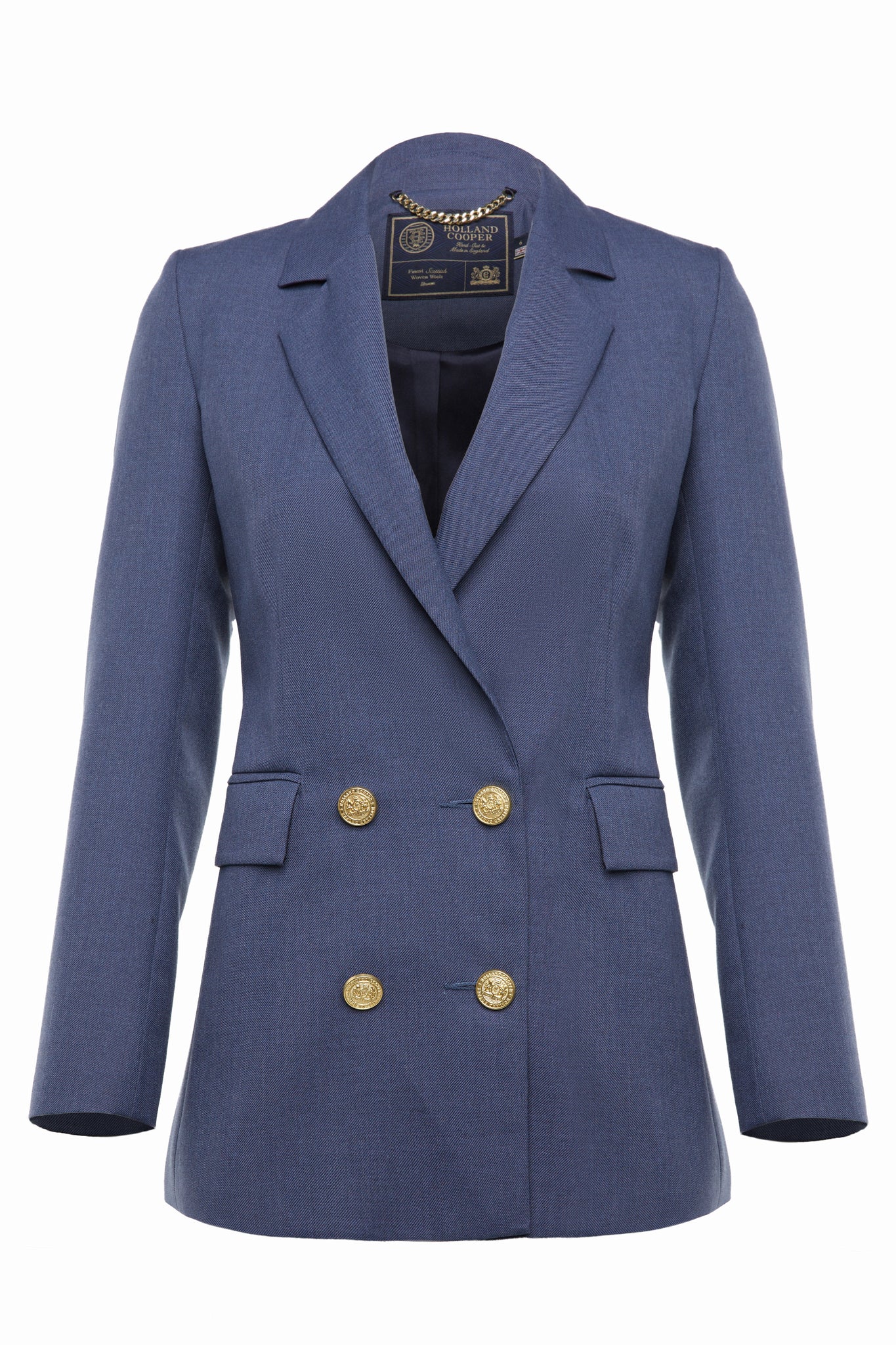 This longline double breasted wool blazer is a chic trans-seasonal forever wardrobe essential. Designed to create a sharp tailored silhouette worn open or closed. Fully lined with a luxury stretch lining for extra comfort and adorned with HC signature gold buttons on the front and cuffs. This blazer has been hand cut and made entirely in England using wools woven in the UK.