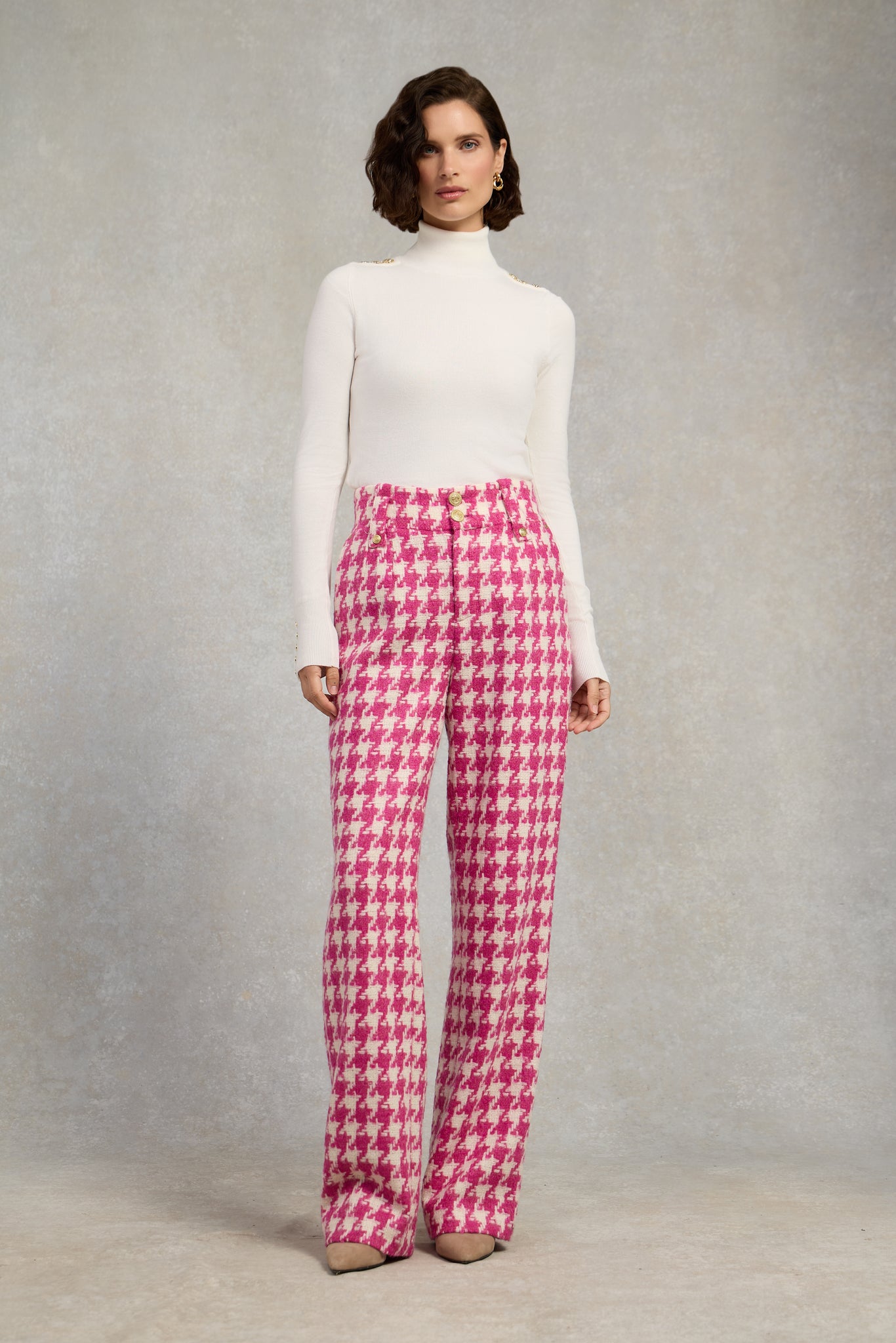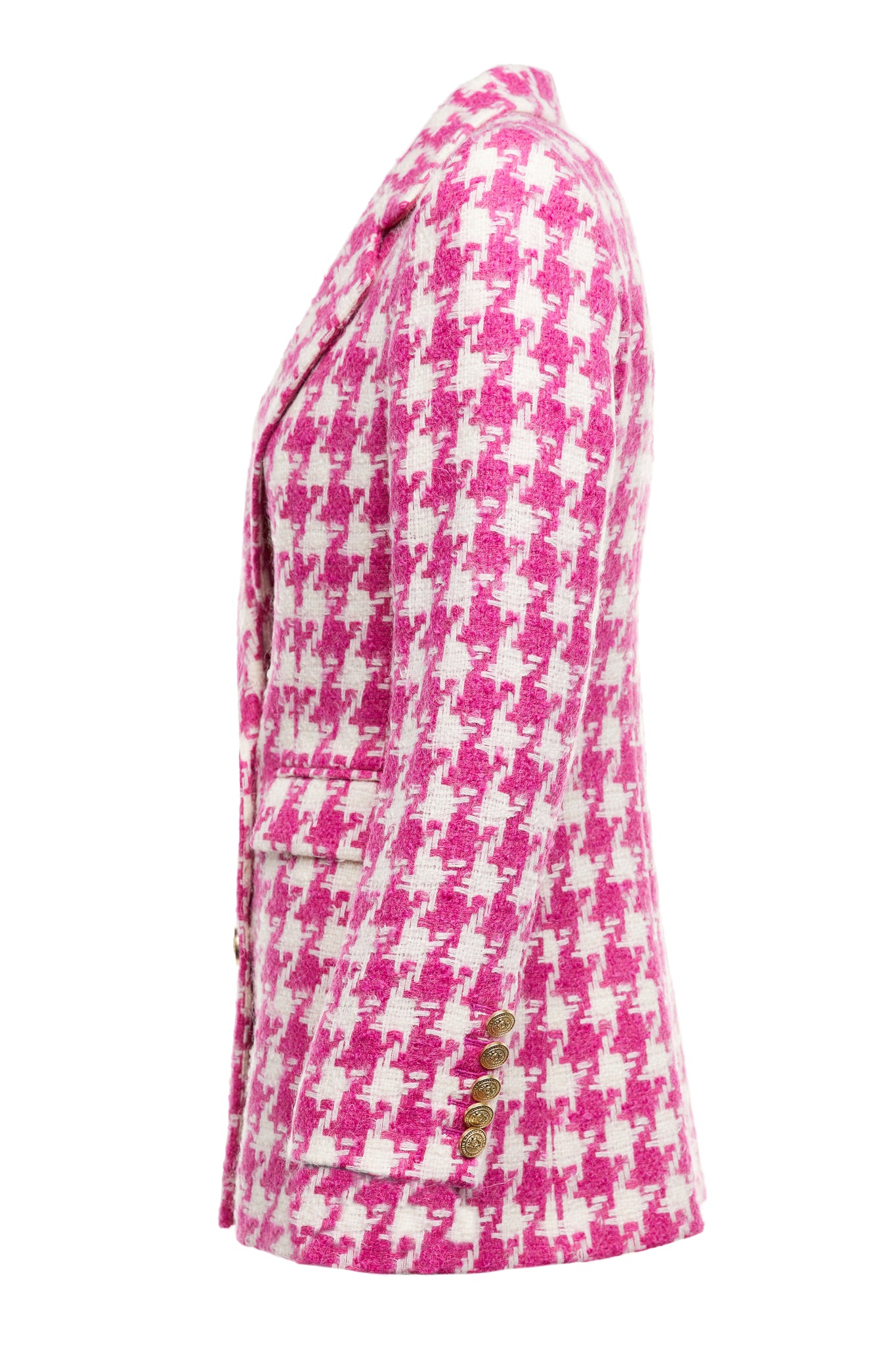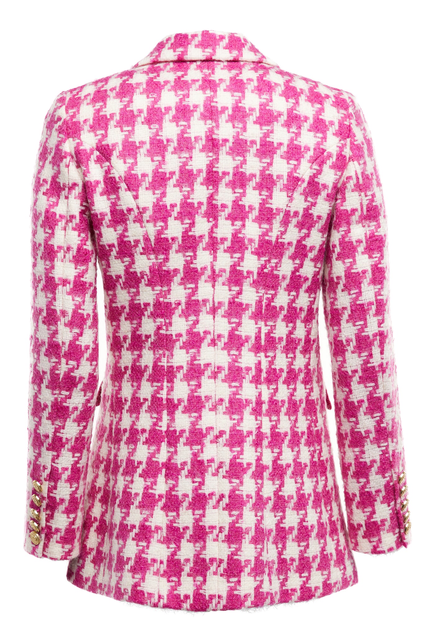 Designed to create a sharp tailored silhouette worn open or closed, the Double Breasted wool blazer has been handmade in the UK. Crafted from our statement houndstooth fabric & fully lined with a luxury stretch lining for extra comfort, this piece is a must-have staple for your wardrobe. With bold lapels & subtle hip pockets, each blazer has been elevated with HC signature gold hardware to the front and cuffs.