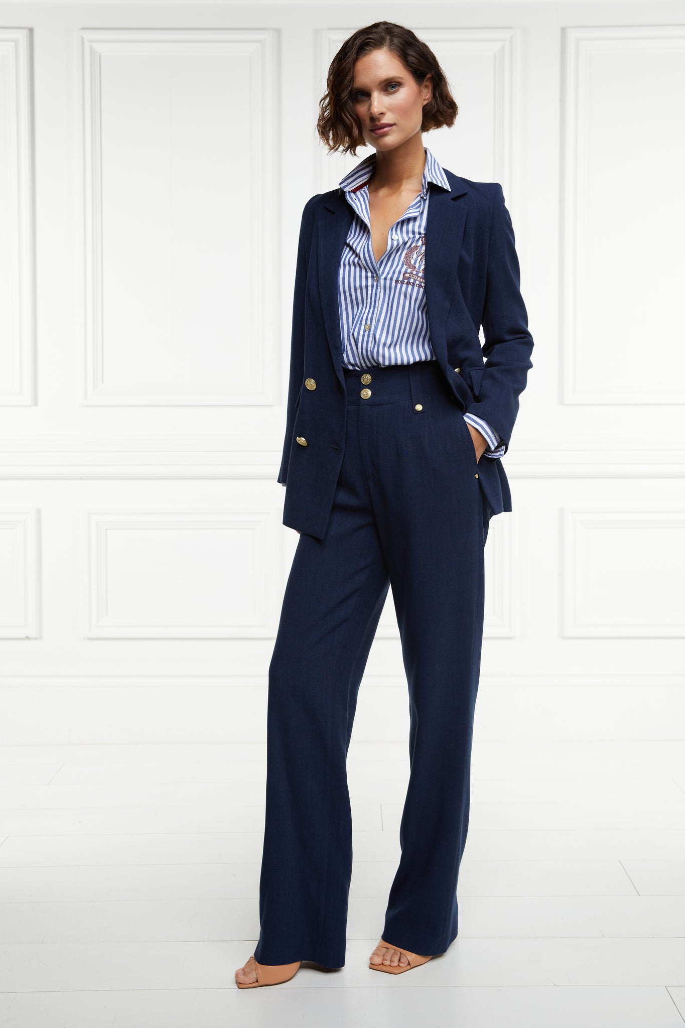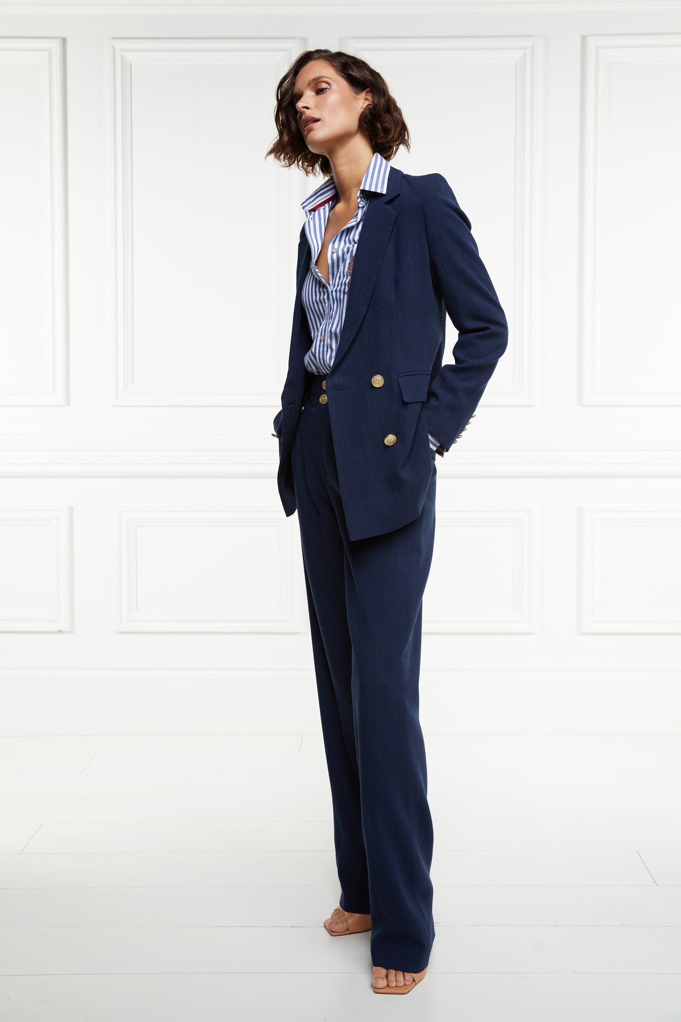 Designed to create a sharp tailored silhouette worn open or closed, the Double Breasted Linen Blazer has been handmade in the UK. Fully lined with a luxury stretch lining for extra comfort and adorned with HC signature gold hardware to the front and cuffs, this piece is a must have for your spring wardrobe.