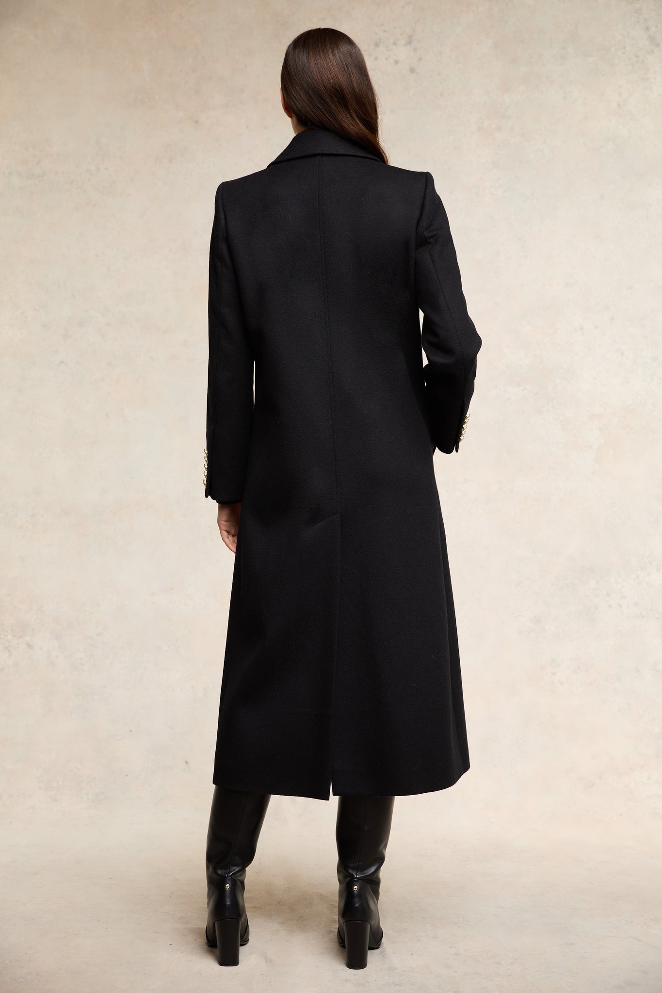 This longline sophisticated wool coat has a more-relaxed silhouette than some of our super-fitted tailoring. Perfect to layer with a classic tee or styled with our super-chunky knitwear. Made from the finest UK woven wools, this coat has been hand cut and proudly made in England.