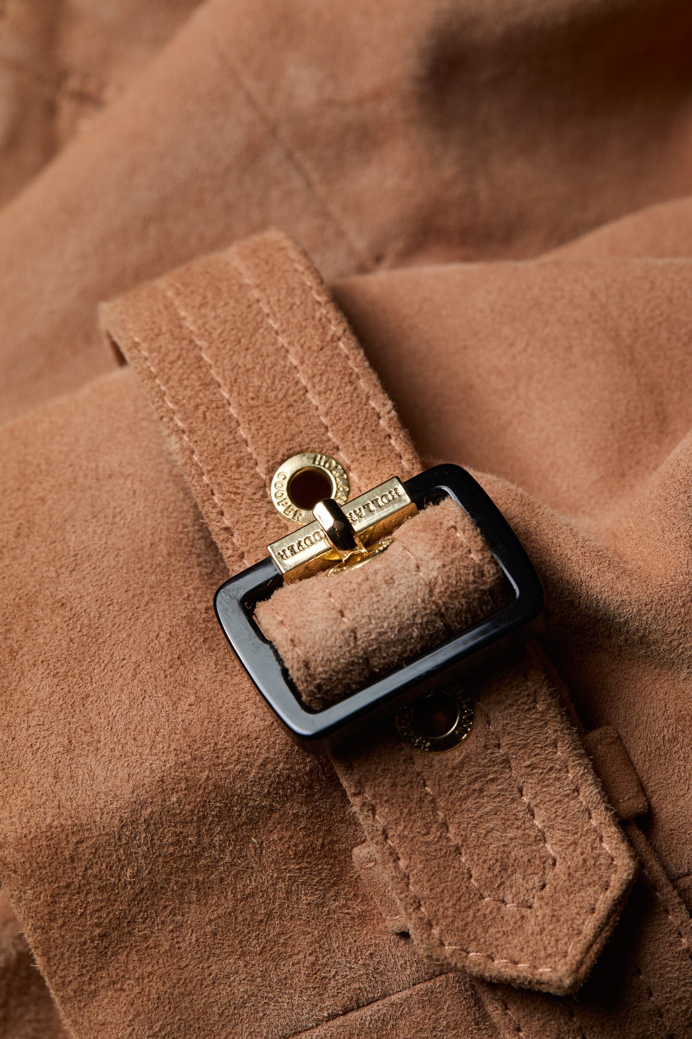 This refined piece features a contemporary boxy cut, masterfully detailed with classic trench elements and elevated by lustrous matte gold hardware. The sumptuous nude hue offers versatile elegance, while the premium construction ensures enduring quality. A testament to timeless British craftsmanship, this jacket seamlessly bridges heritage design with contemporary sophistication.