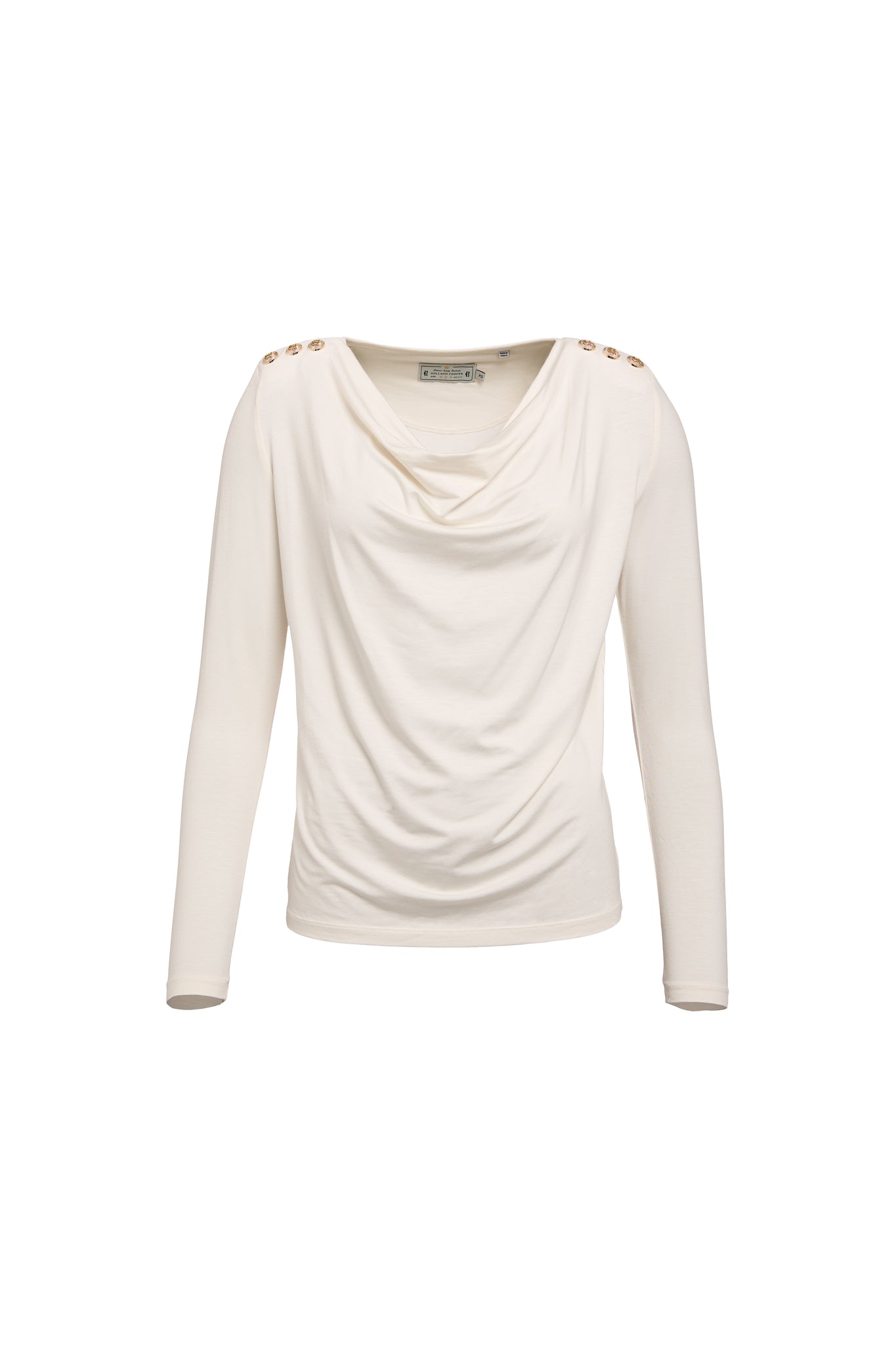 Crafted from a luxuriously soft fabric, this top has been designed for a relaxed fit, ensuring both comfort and style. Showcasing effortless elegance with a delicate cowl neckline, long sleeves and detachable shoulder pads. Detailed with our signature branding on the shoulders.