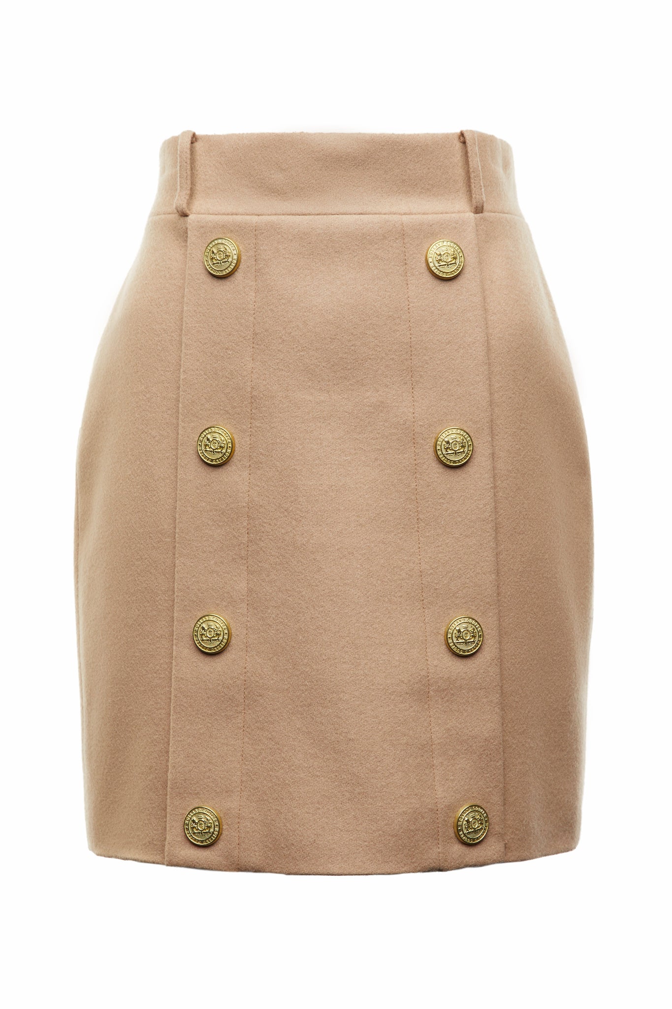 This mini style pencil skirt is fully lined and cut for a close fit from wool accented by gold rivets engraved with the classic HC crest. Tuck your sweater or blouse into the sculpting high-rise waist for an extra stylish look and feel.