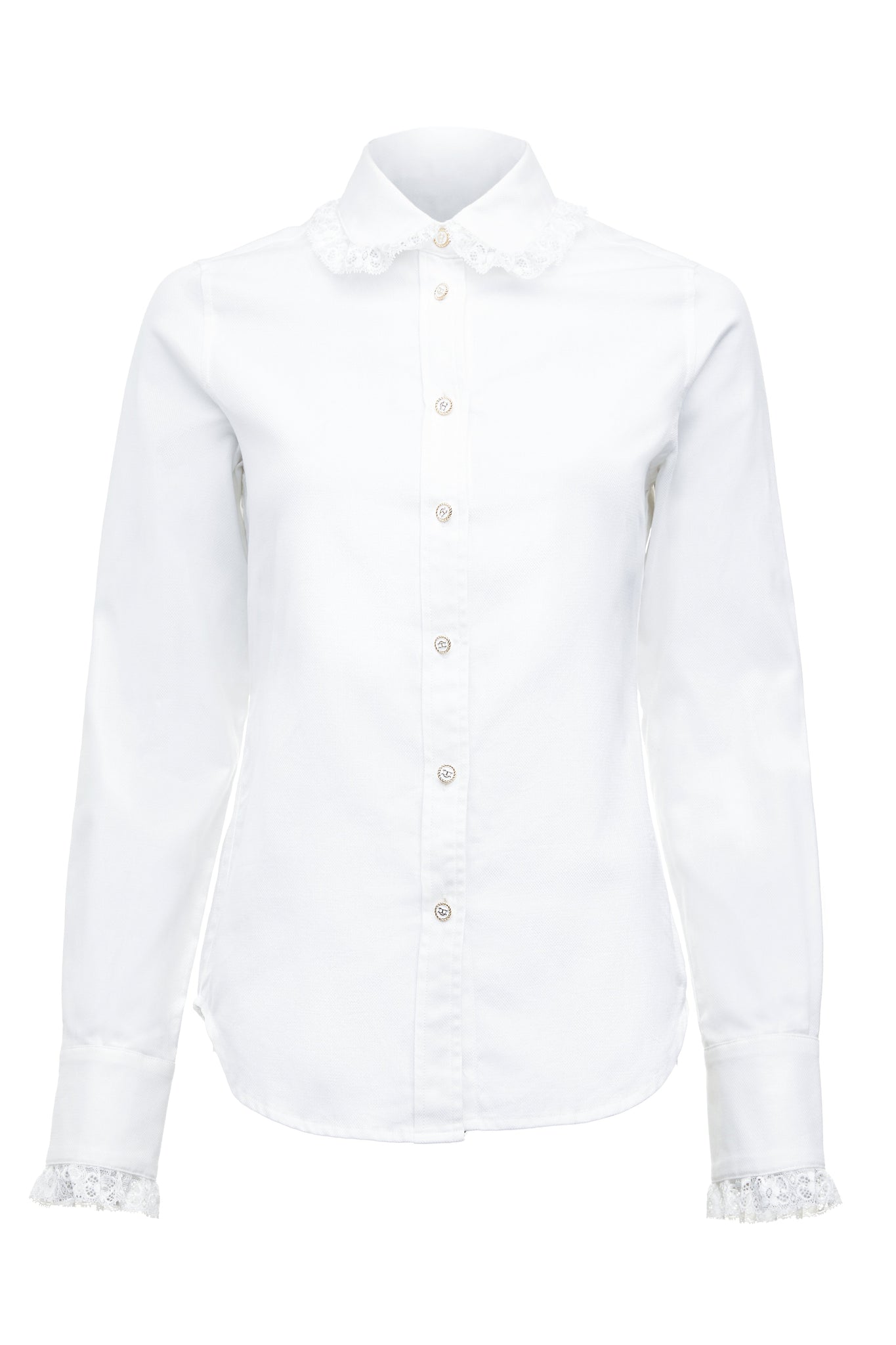 The Rose Shirt puts a romantic spin on a classic white shirt, and the results are the epitome of beauty and femininity. It's made from sumptuously soft cotton and finished with delicate lace trim around the collar and cuffs.