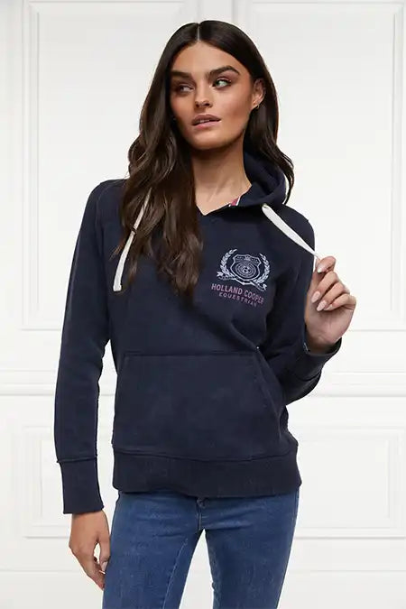 This relaxed fit hoodie is created from a blend of premium cotton yarns with a luxurious waffle lined adjustable drawstring hood. The front and back are detailed with a faded graphic for a vintage effect. Designed with a large front pocket, ribbed hems and side rib panelling.