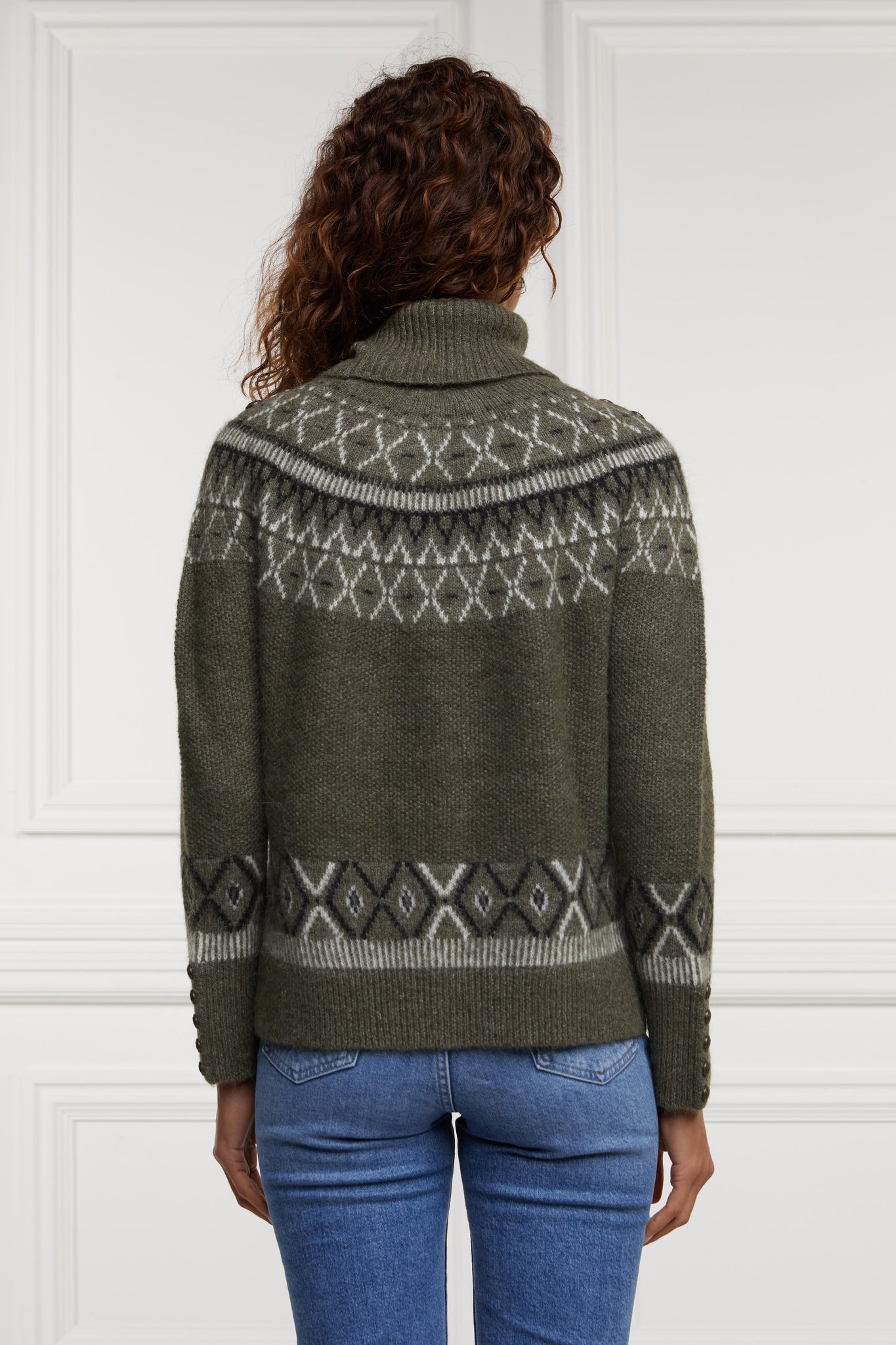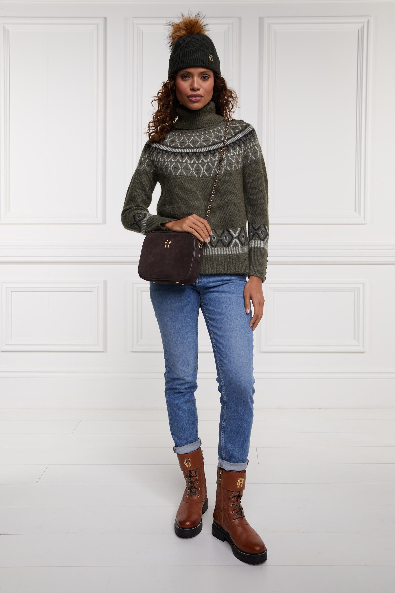 Created with a classic fairisle design that stretches across the shoulders, this knit has been designed with a relaxed fit. Made from a super soft and lightweight yarn with a cosy roll neck and ribbed cuffs. Detailed with our iconic HC branding.