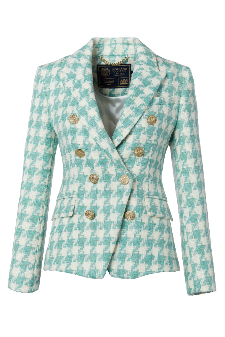 Perfectly blending a modern and vintage aesthetic, this jacket has been crafted with a slightly cropped, easy fit with articulated sleeves. The collarless feature adds a touch of versatility, making it the perfect pairing for shirts, dresses and high-neck tops. Bluff pockets on the chest with fictional pocket flaps, alongside lower side entry welt pockets, enhance its chic aesthetic. Finished with our signature Holland Cooper gold hardware, this jacket seamlessly blends timeless elegance with contemporary flair.